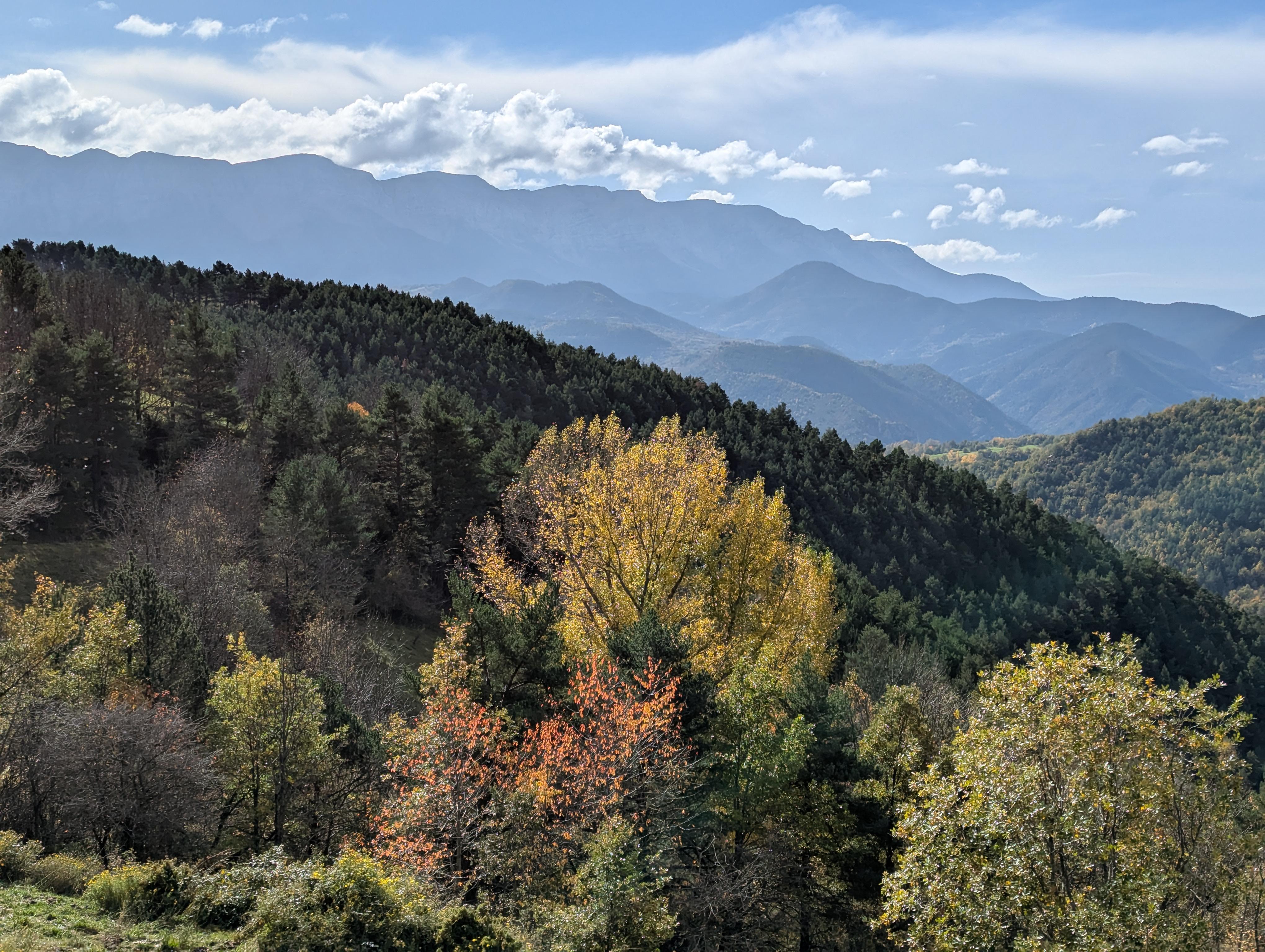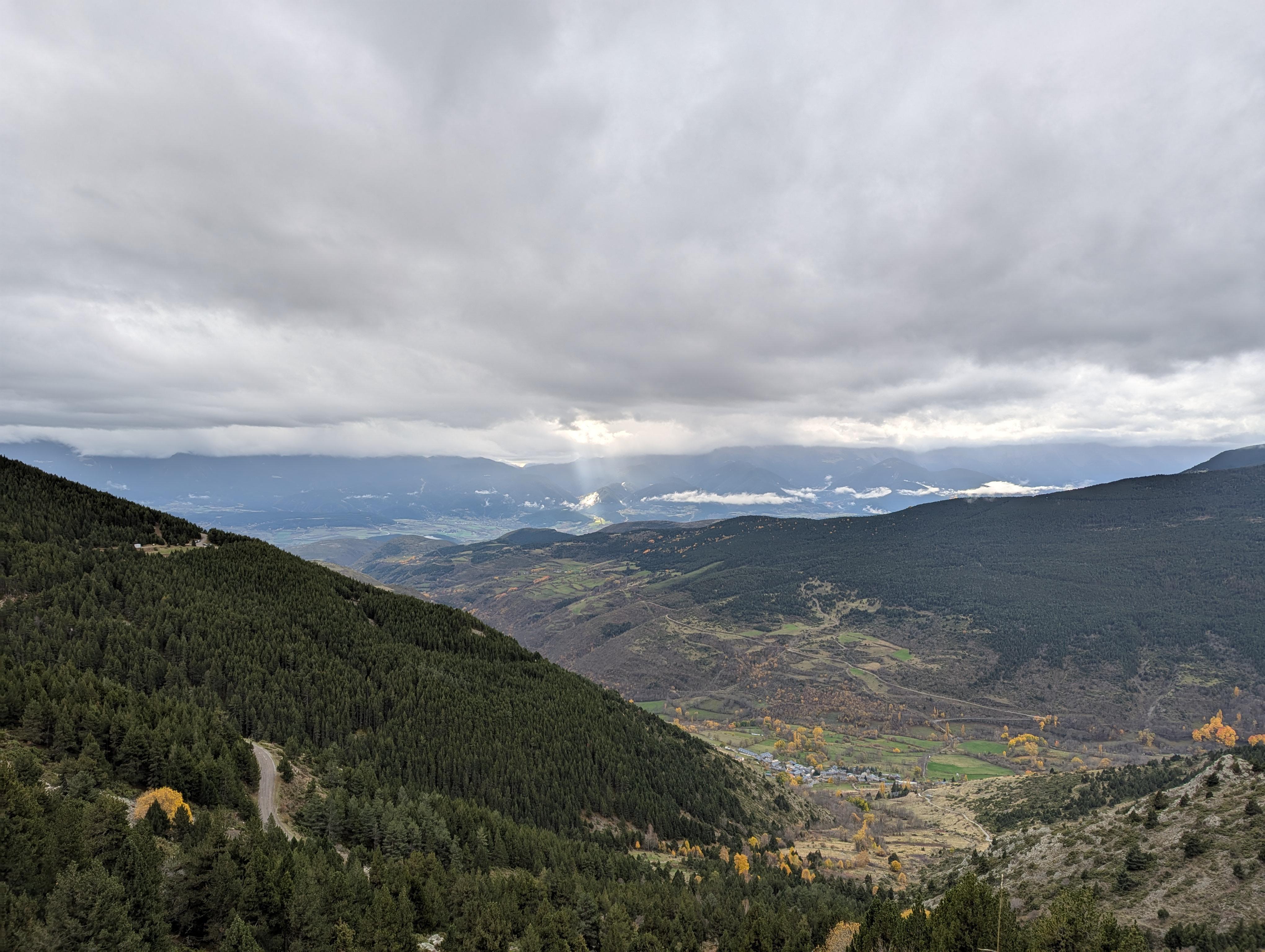 W zasadzie trasa ta leży już na południowym krańcu Pirenejów. W związku z tym widoki są głównie na południową stronę — czyli na Cadi-Moixero.