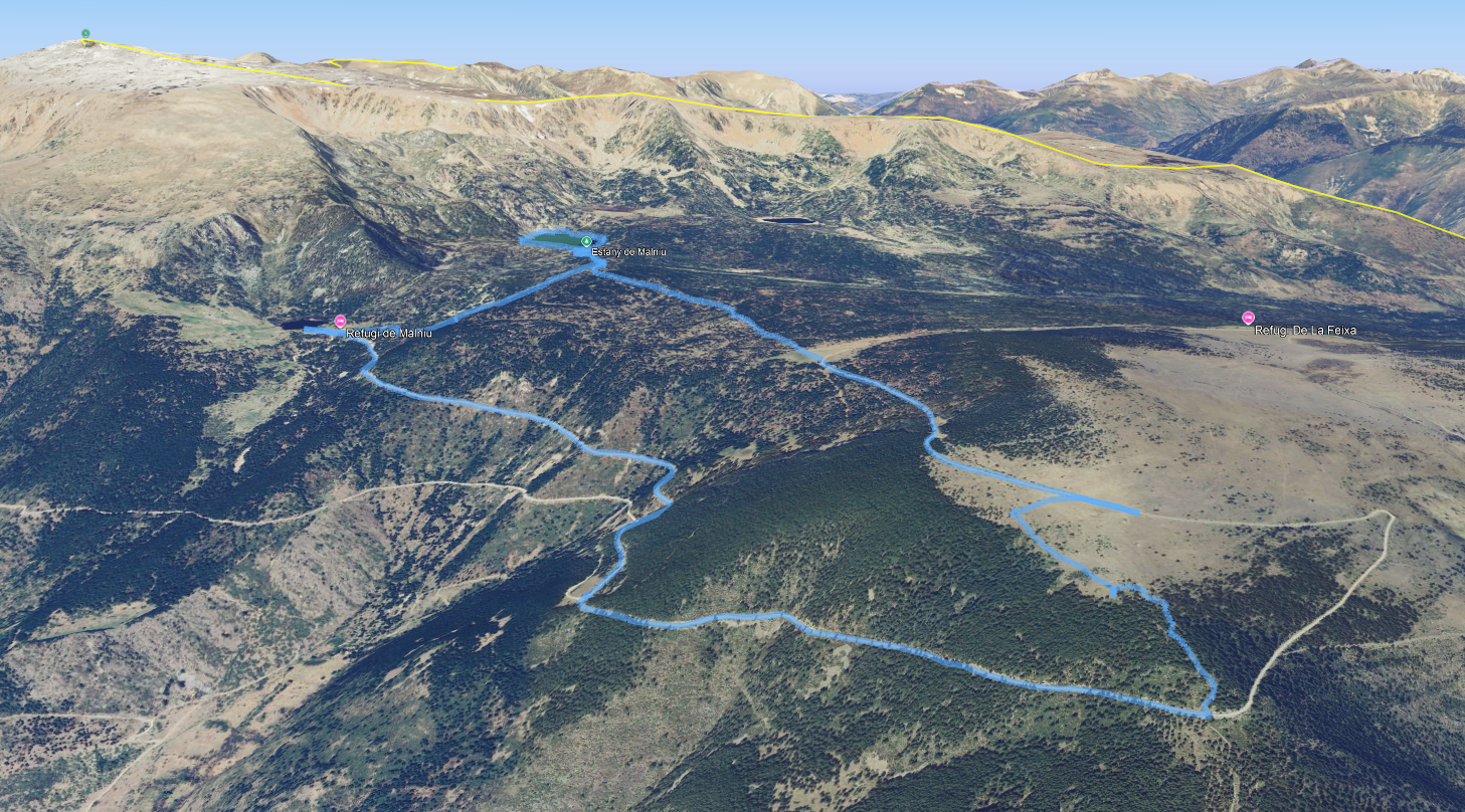 Trzeciego dnia wybraliśmy się głęboko (acz nie daleko) na północ, w wyższe Pireneje. Trasa zakłała wyruszenie ze schroniska Refugi de Malniu, dojście do jeziora Estany de Malniu, ewentualnie wyżej położonego Estany Mal i powrót inną drogą.
