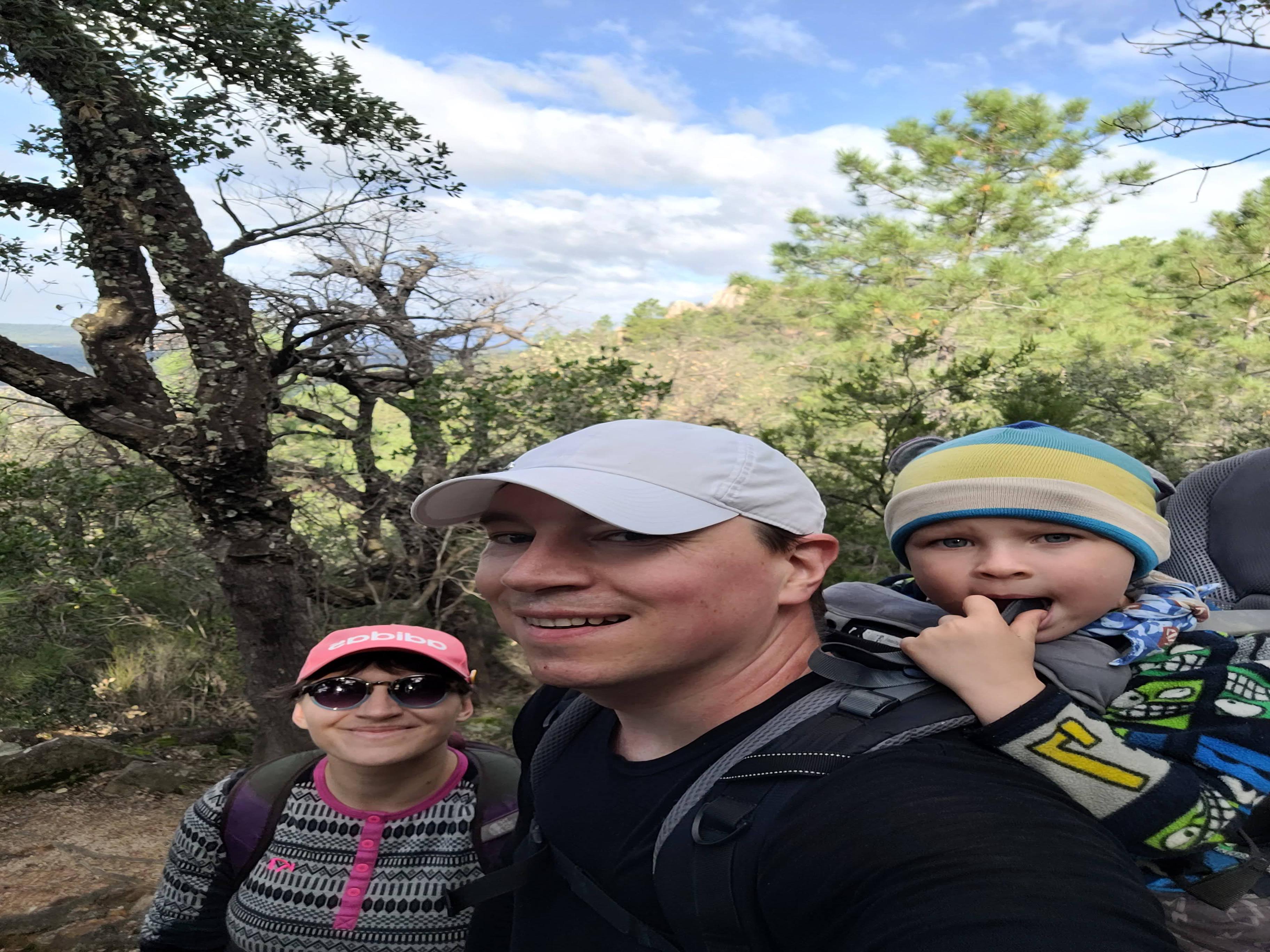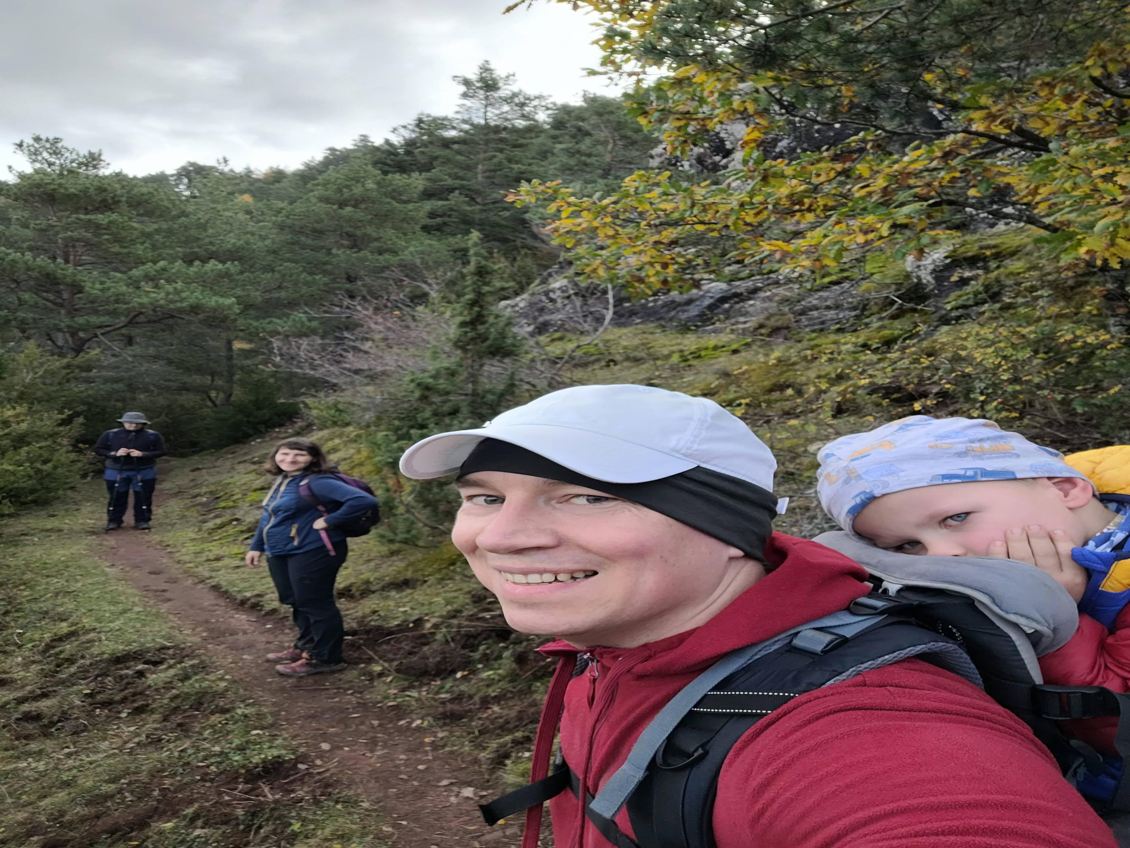 Później zdołaliśmy jeszcze zgubić szlak i trochę kluczyć między drzewami. Ale ogólnie łagdne zejście.