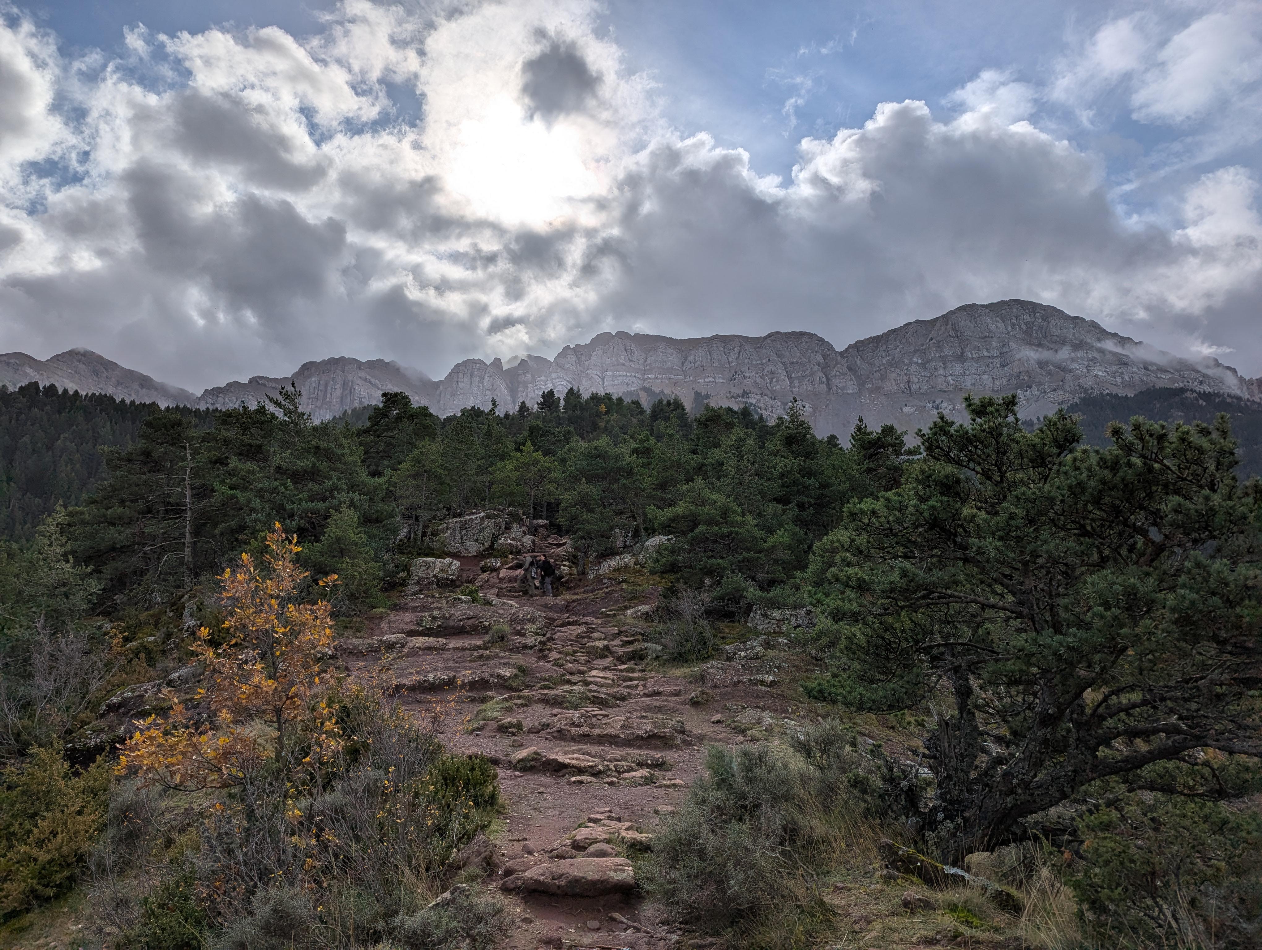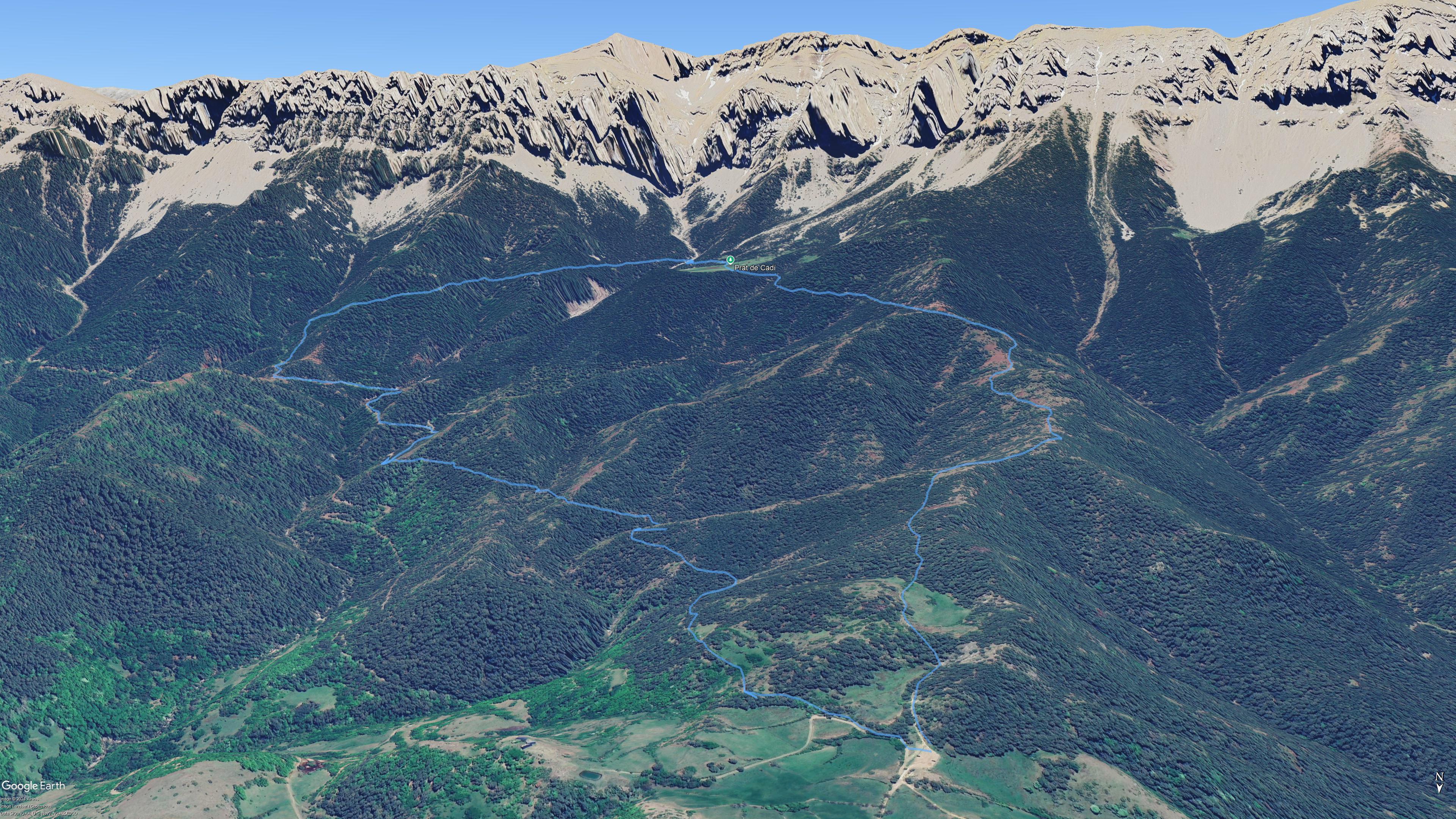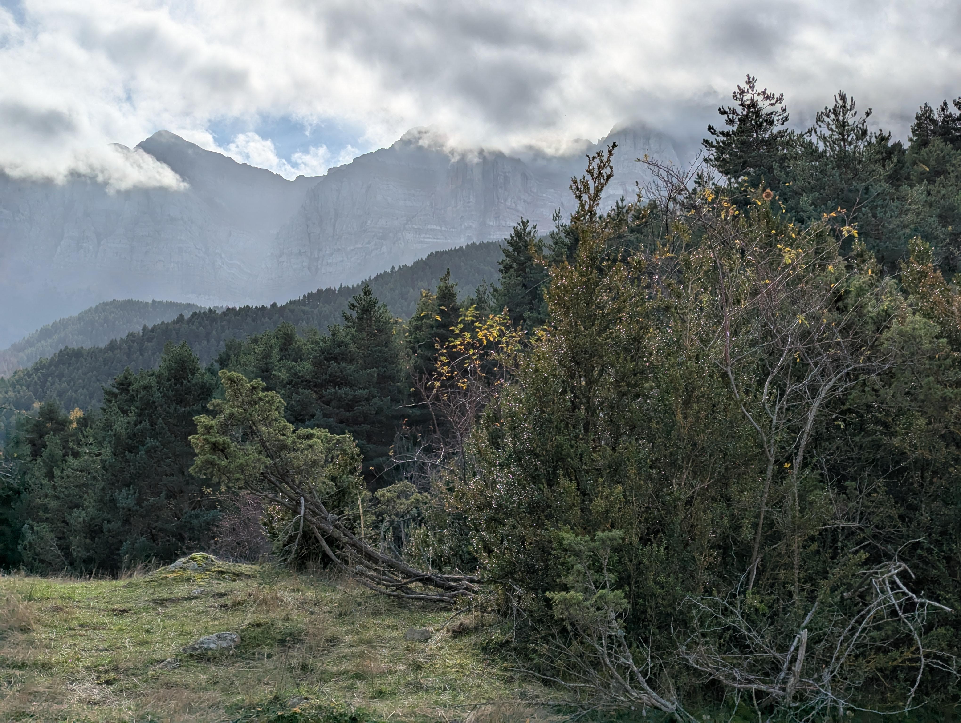 W końcu wyruszyliśmy w kierunku Cadí-Moixeró — wszak po to tam przyjechaliśmy. Wybraliśmy popularny szlak z głęboko (czyt. wysoko) położonego miasteczka Estana do polany Prat de Cadi, skąd można zrobić kółko spowrotem. Cała trasa liczy 8,7 km, 454 m podejść i zajęła 4:20.