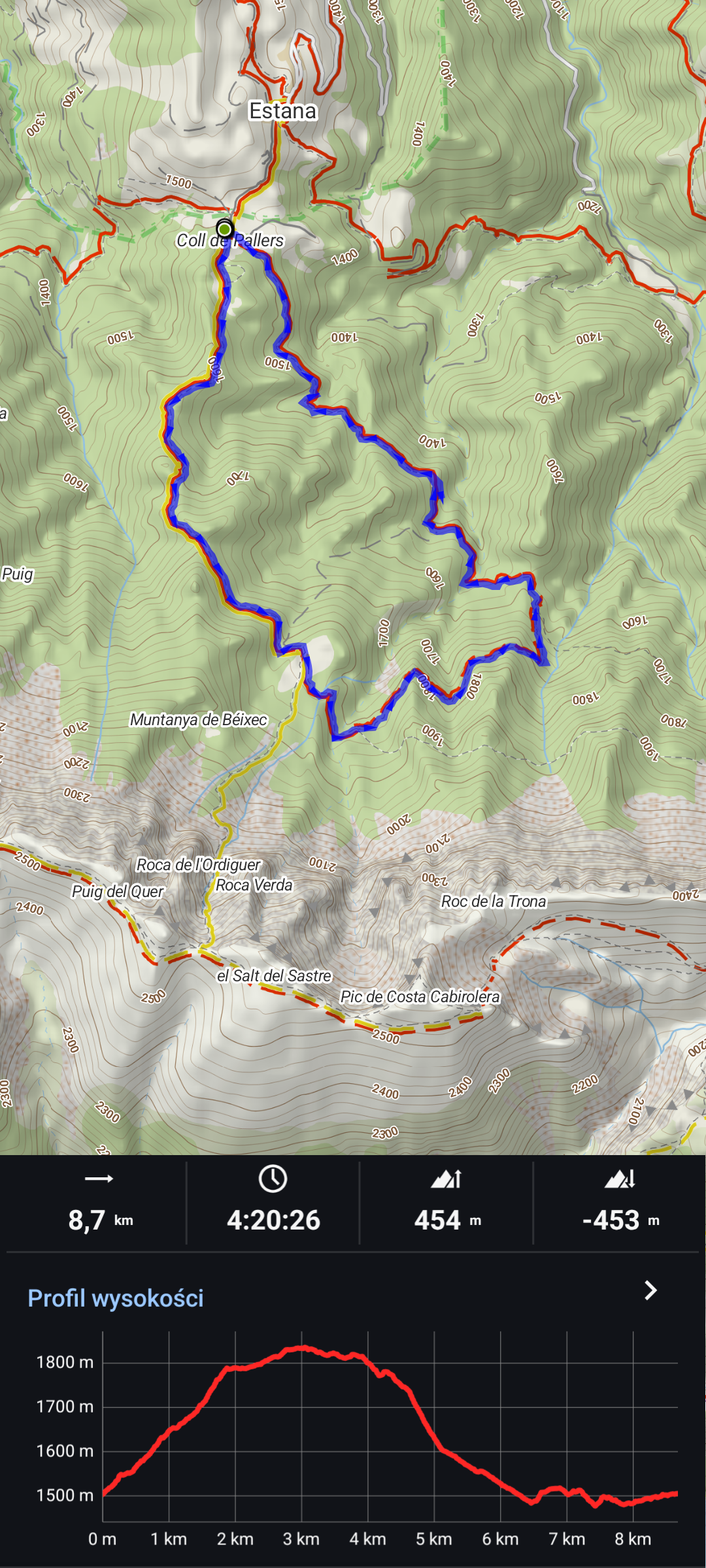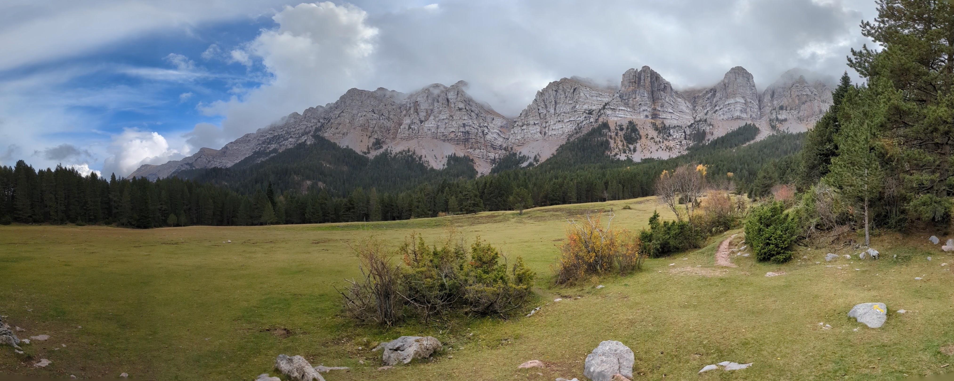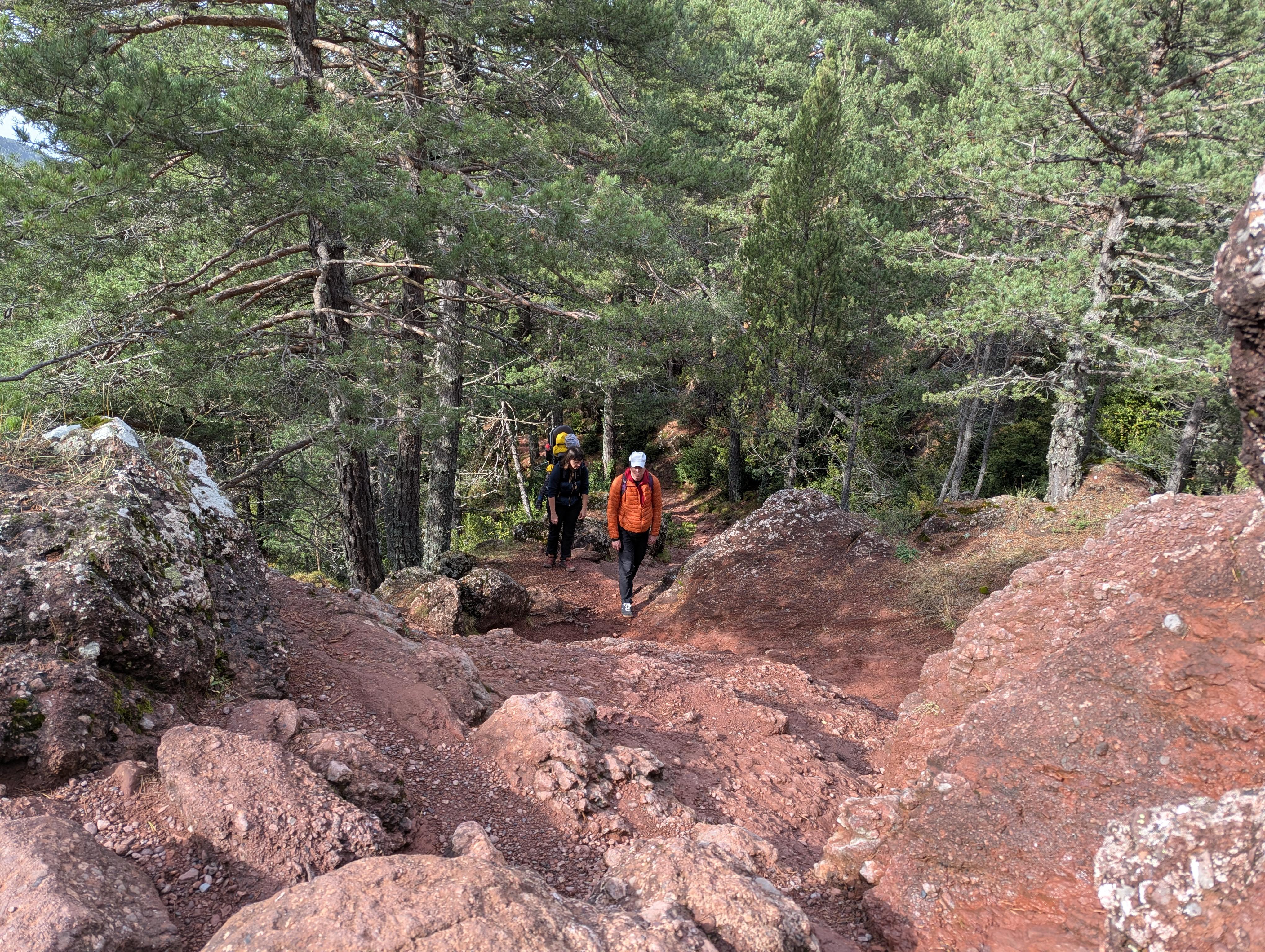 W końcu wyruszyliśmy w kierunku Cadí-Moixeró — wszak po to tam przyjechaliśmy. Wybraliśmy popularny szlak z głęboko (czyt. wysoko) położonego miasteczka Estana do polany Prat de Cadi, skąd można zrobić kółko spowrotem. Cała trasa liczy 8,7 km, 454 m podejść i zajęła 4:20.