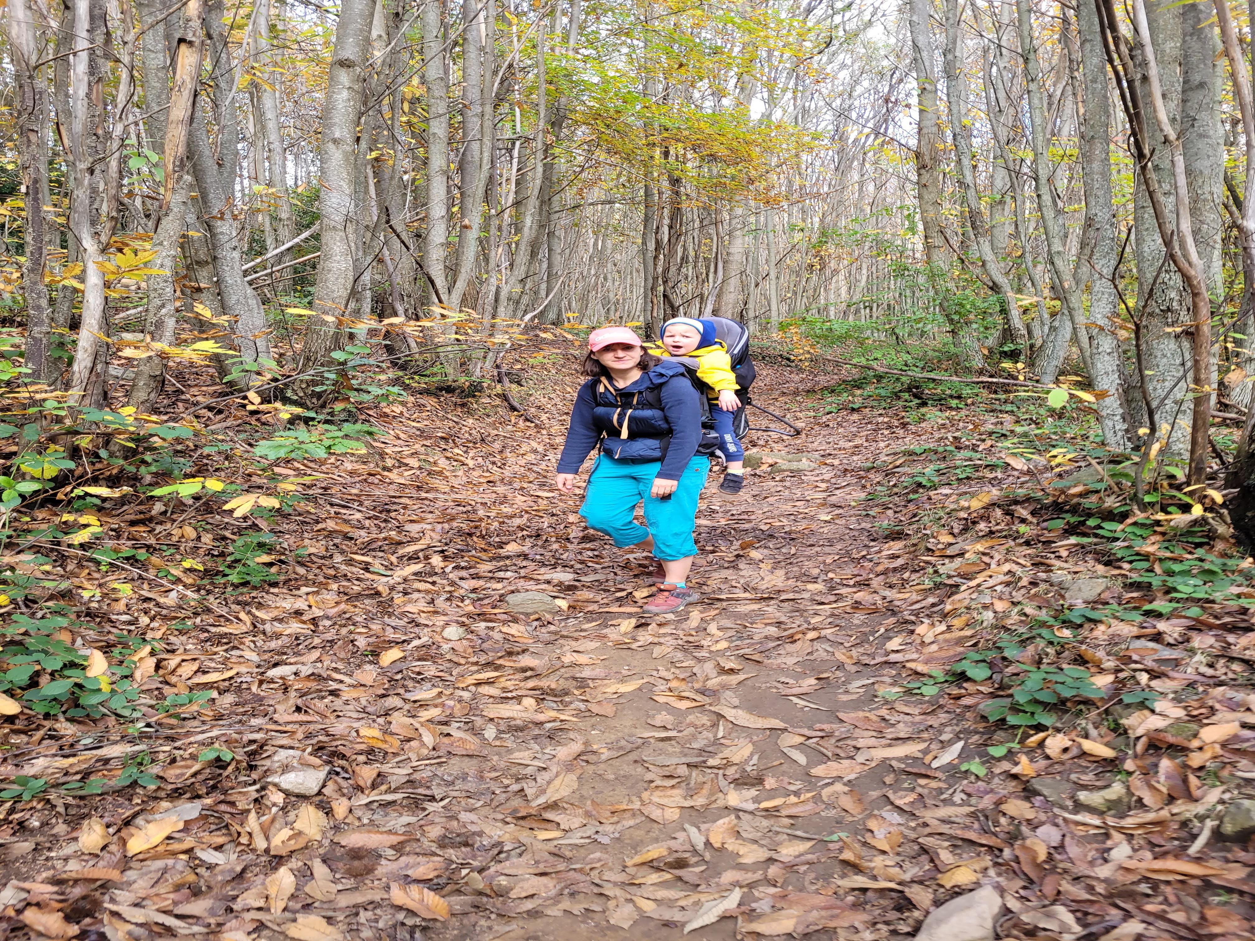 W drodze powrotnej zrobiliśmy z Gosią kółko ścieżką odchodzącą po drugiej stronie polany, a Maciek z Kubą poszli skrótem. Nasza droga była dosyć męcząca ze stromymi śliskimi błotniskimi zejściami w lesie. W połowie zejścia spotkaliśmy się z Maćkiem i Kubą, którzy już na nas czekali.