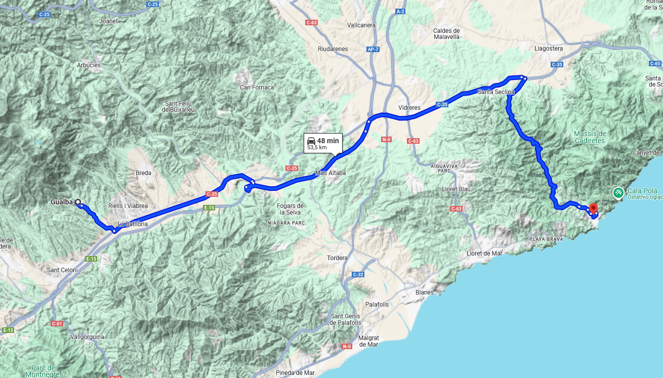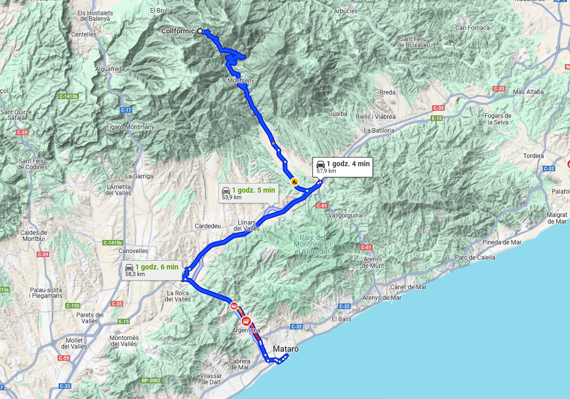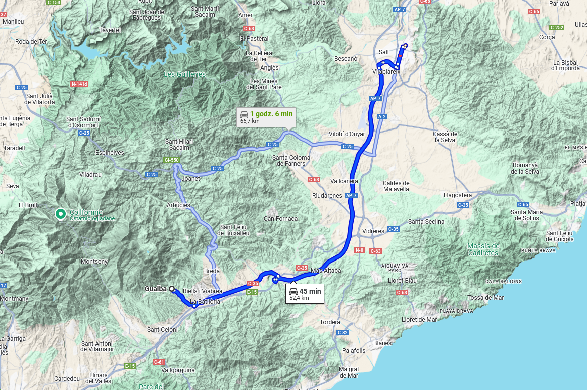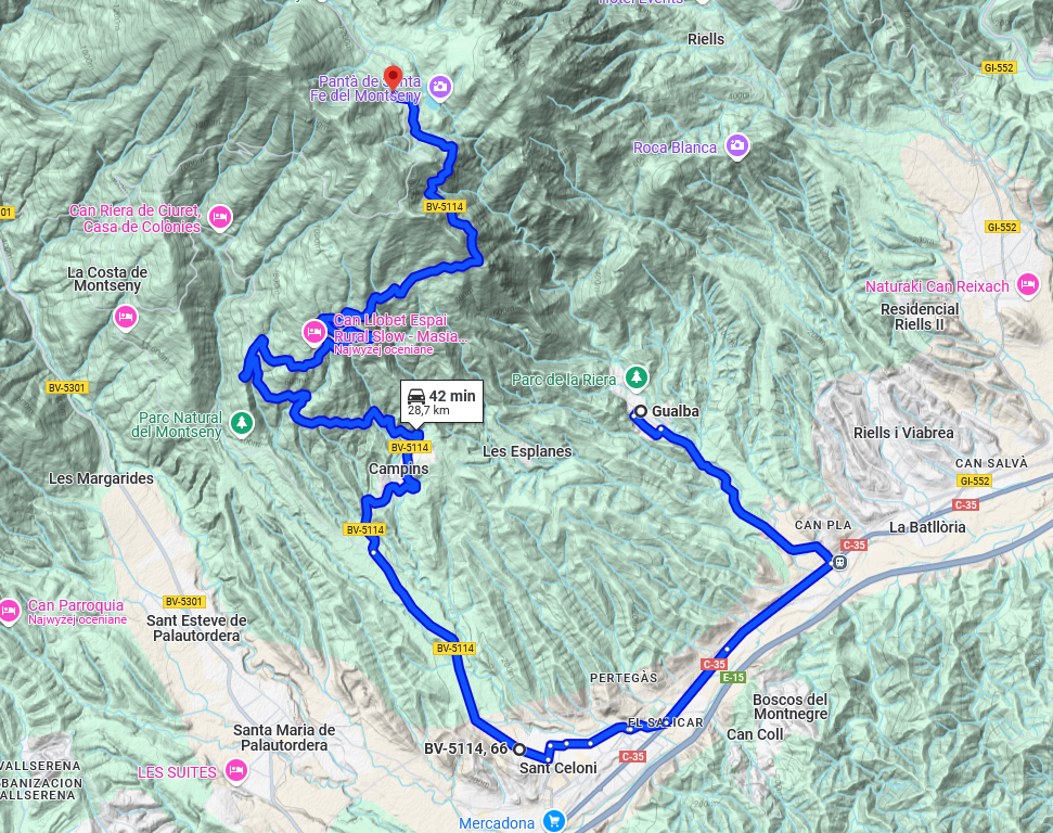 Drugi nocleg zarezerwowaliśmy będąc w Olopte. Chcieliśmy być bliżej wybrzeża i lotniska, a przy tym mieć dostęp do fajnych szlaków. Wybór nie był tak szeroki, jak by się wydawało z uwagi na wyższe ceny. Ostatecznie zarezerwowaliśmy Rural Montseny w miasteczku Gualba w rezerwacie krajobrazowym Montseny. Rezerwację mieliśmy od 15:00, więc mogliśmy pojechać o komfortowej godzinie. Cała trasa to raptem 150 km i nieco ponad 2 godziny.