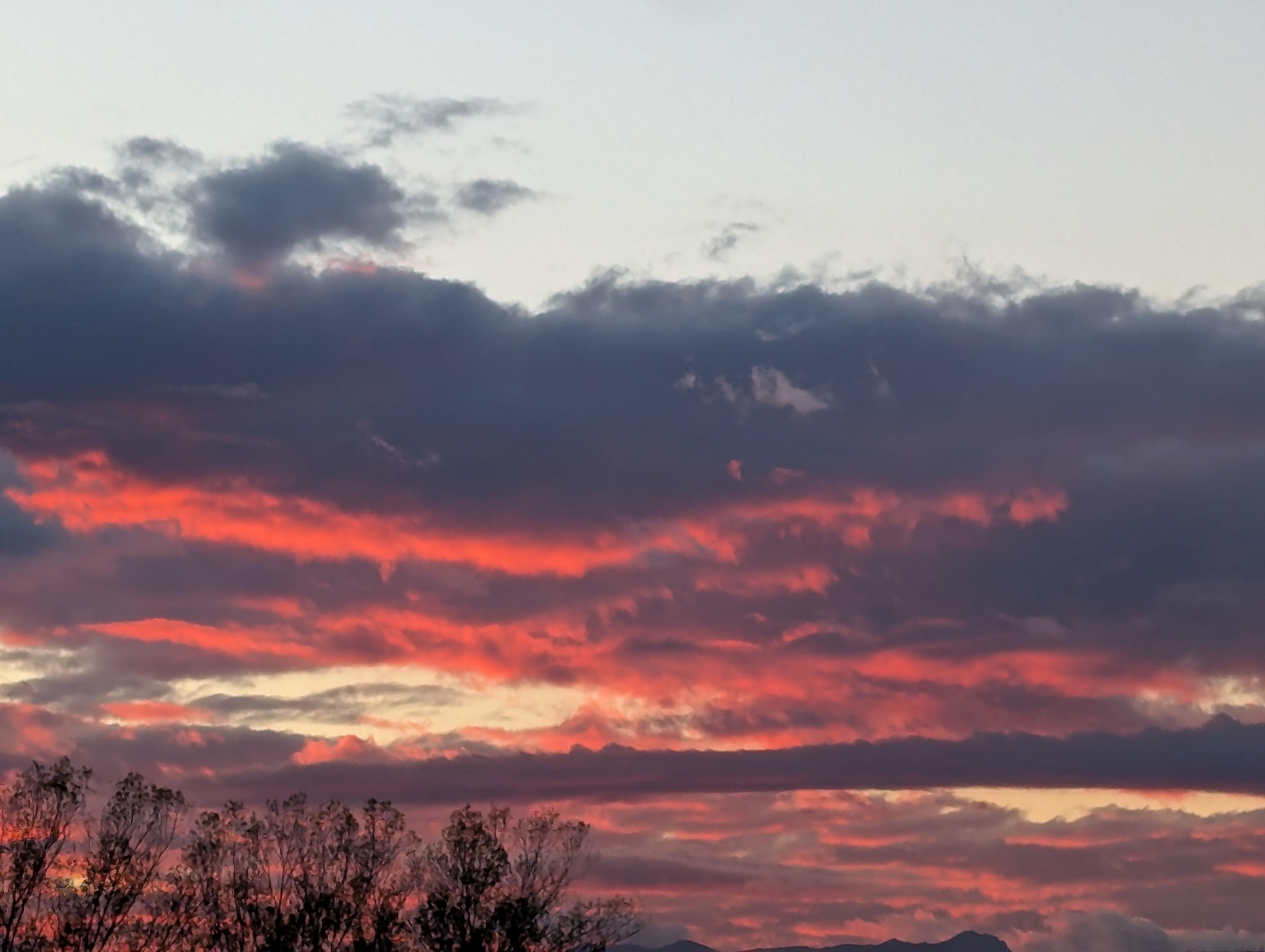 W drodze powrotnej pojechaliśmy tanio zatankować i trochę pobłądziliśmy jak mapy pokierowały nas mało przejezdną drogą przez jakiś kamping i pole opuszczonych kamperów. Później w drodze mogliśmy podziwiać efekty świetlne zachodu słońca, które nam towarzyszyły codziennie.