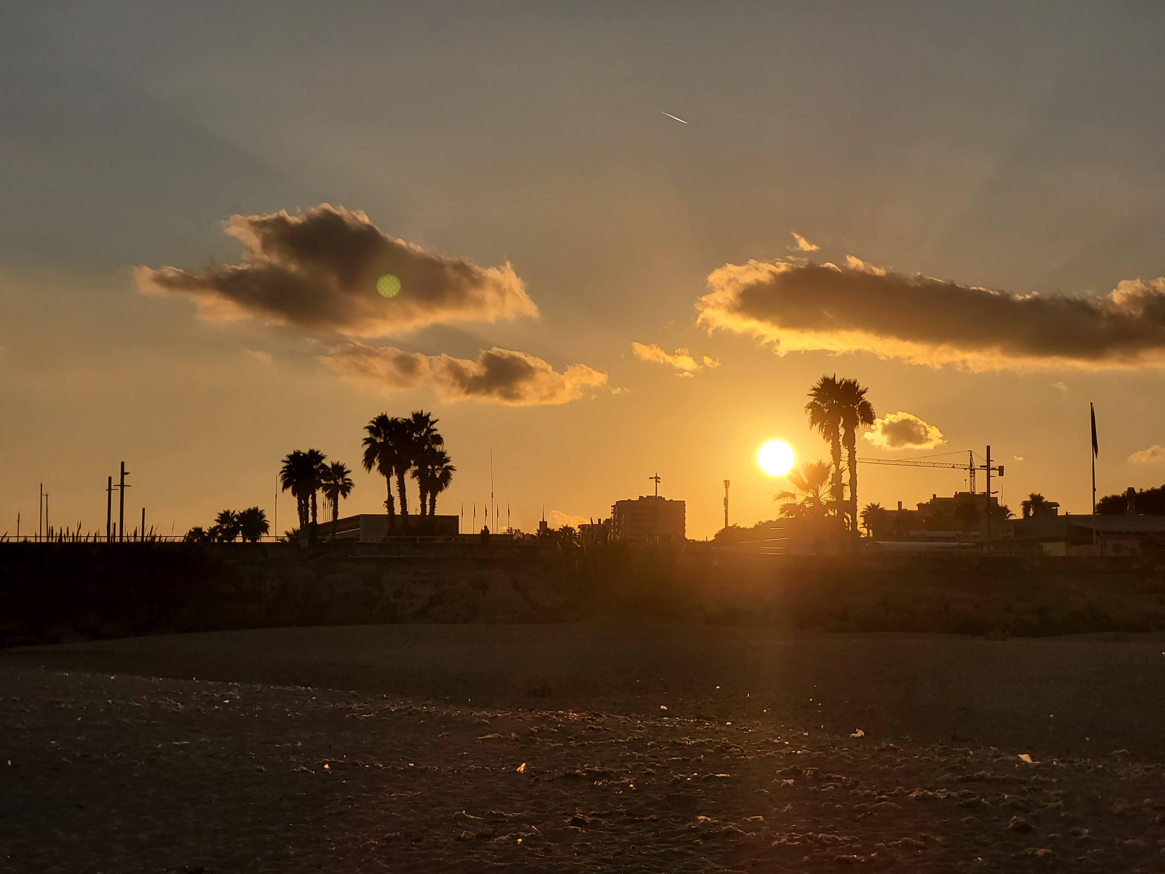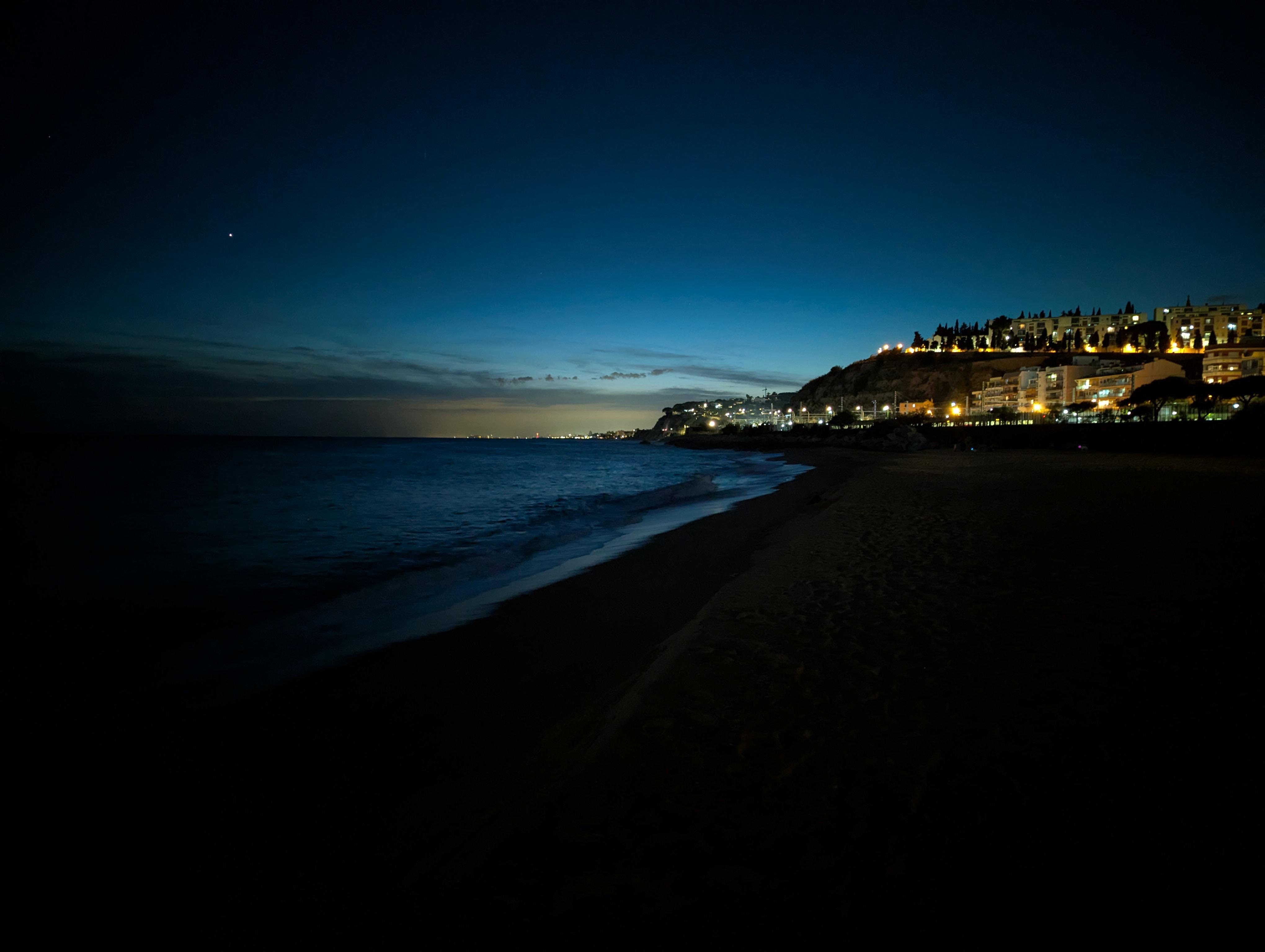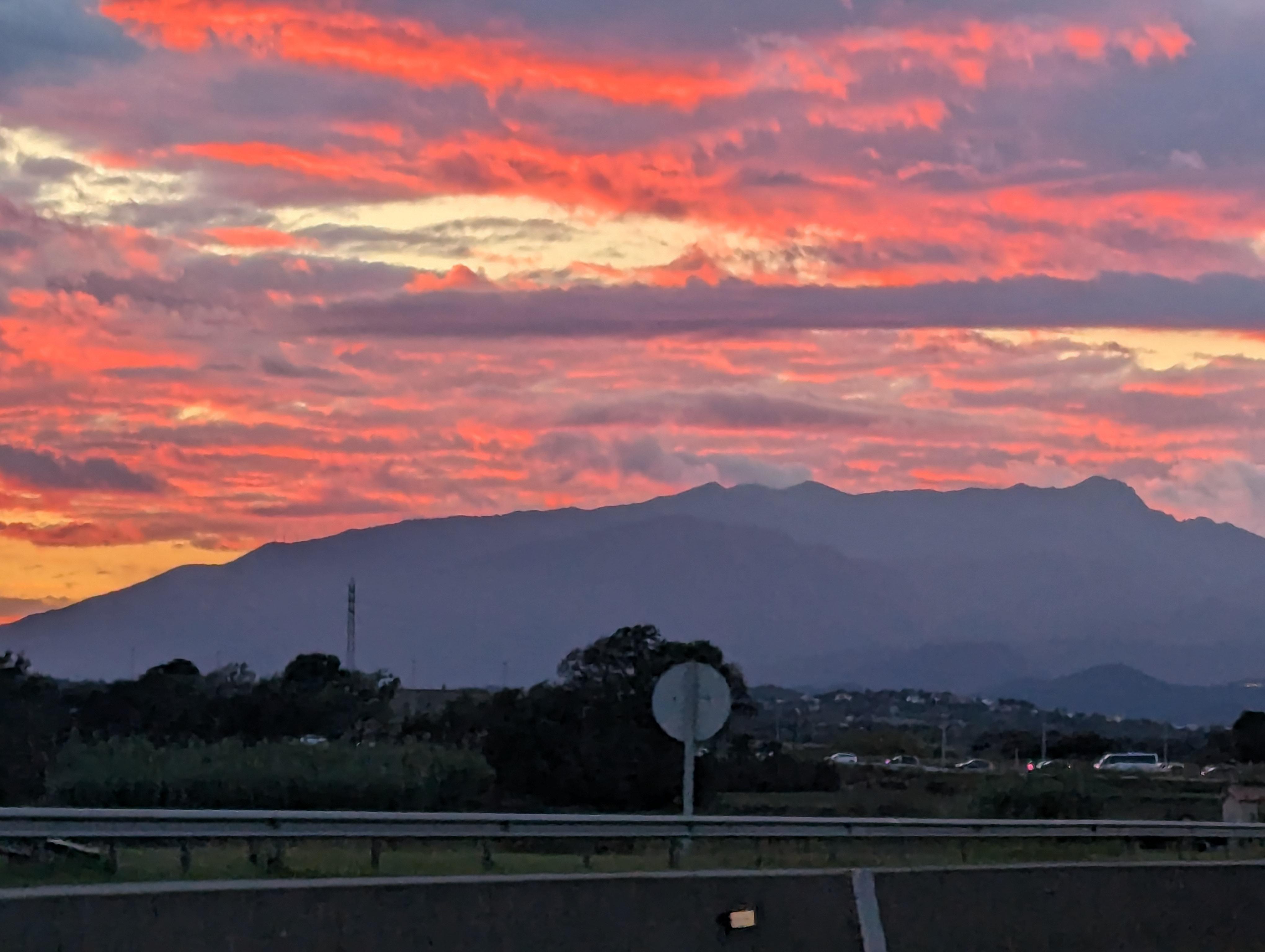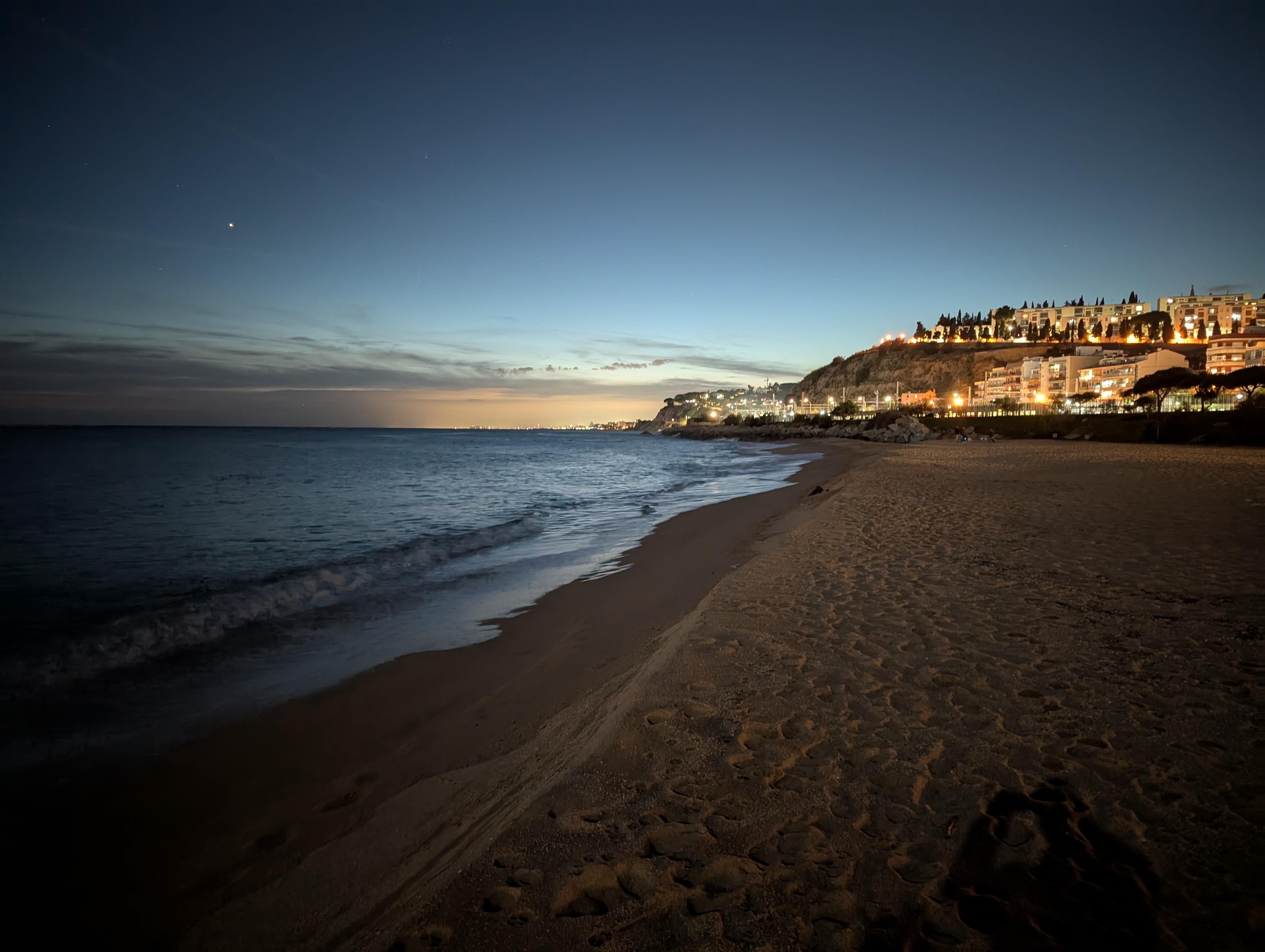 Przez wiele dni obserwowaliśmy piękne zachody słońca wracając samochodem do domu. Po obiedzie wpadliśmy na pomysł, żeby pojechać na wybrzeże i tam obejrzeć zachód. Natomiast zbieraliśmy się tak długo, że wyjechaliśmy już po zachodzie. Wybraliśmy się do najbliższego nadmorskiego miasteczka Arenys de Mar. Wystarczyło tylko przebić się przez Parc del Montnegre i el Corredor, który rozciąga się między wybrzeżem a częścią fabryczną.