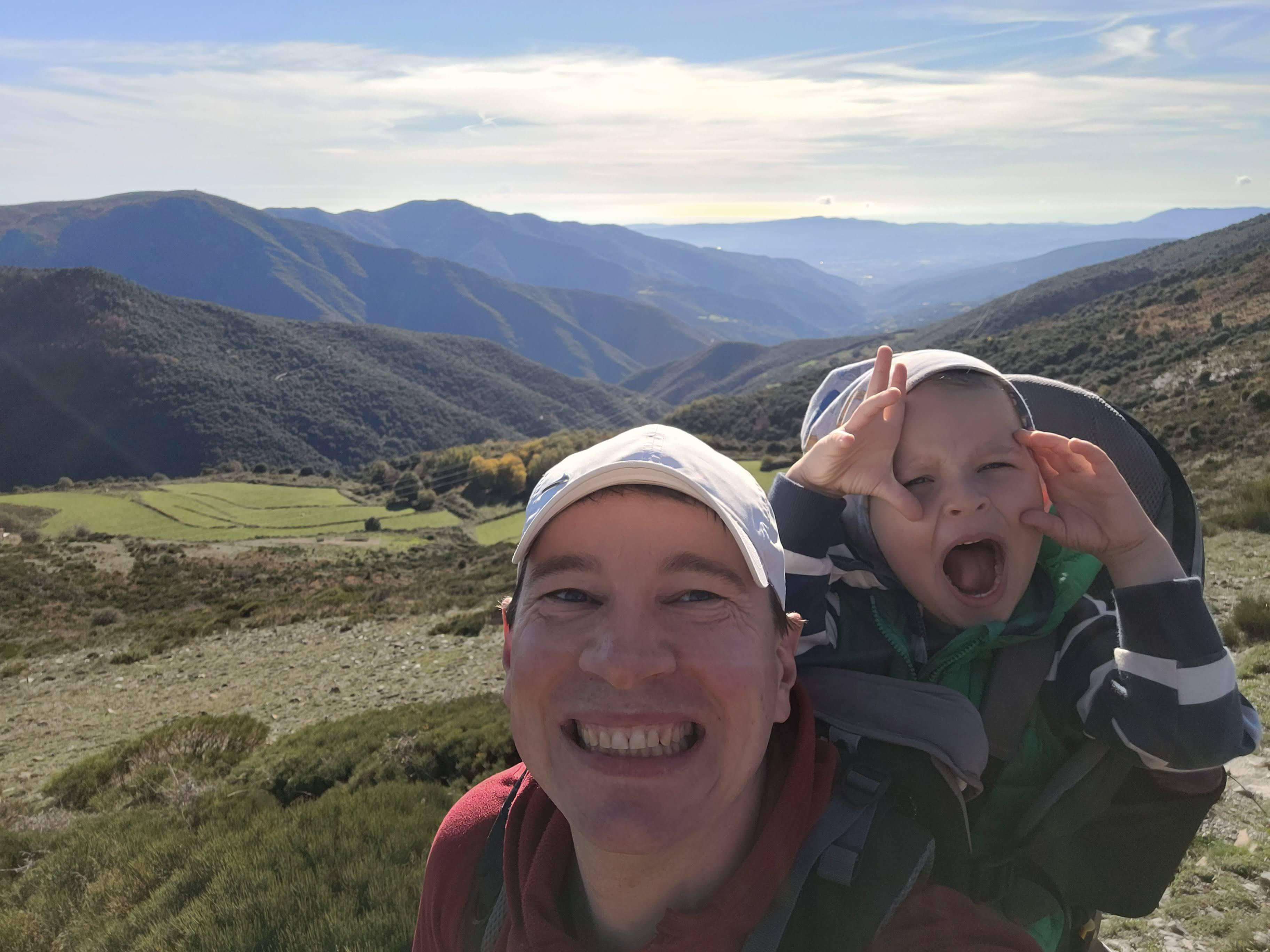Podejście było dosyć intensywne, aczkolwiek w miarę wygodne, bo wchodziliśmy głównie granią. Cały czas towarzyszyły nam piękne krajobrazy, głównie na Cadí-Moixeró, ale też na poboczne szczyty. Nie wchodziło się po kamieniach, więc Kuba był zawiedziony i próbowaliśmy wytłumaczyć mu, że chodzenie po skale to tak jak po jednym wielkim kamieniu.