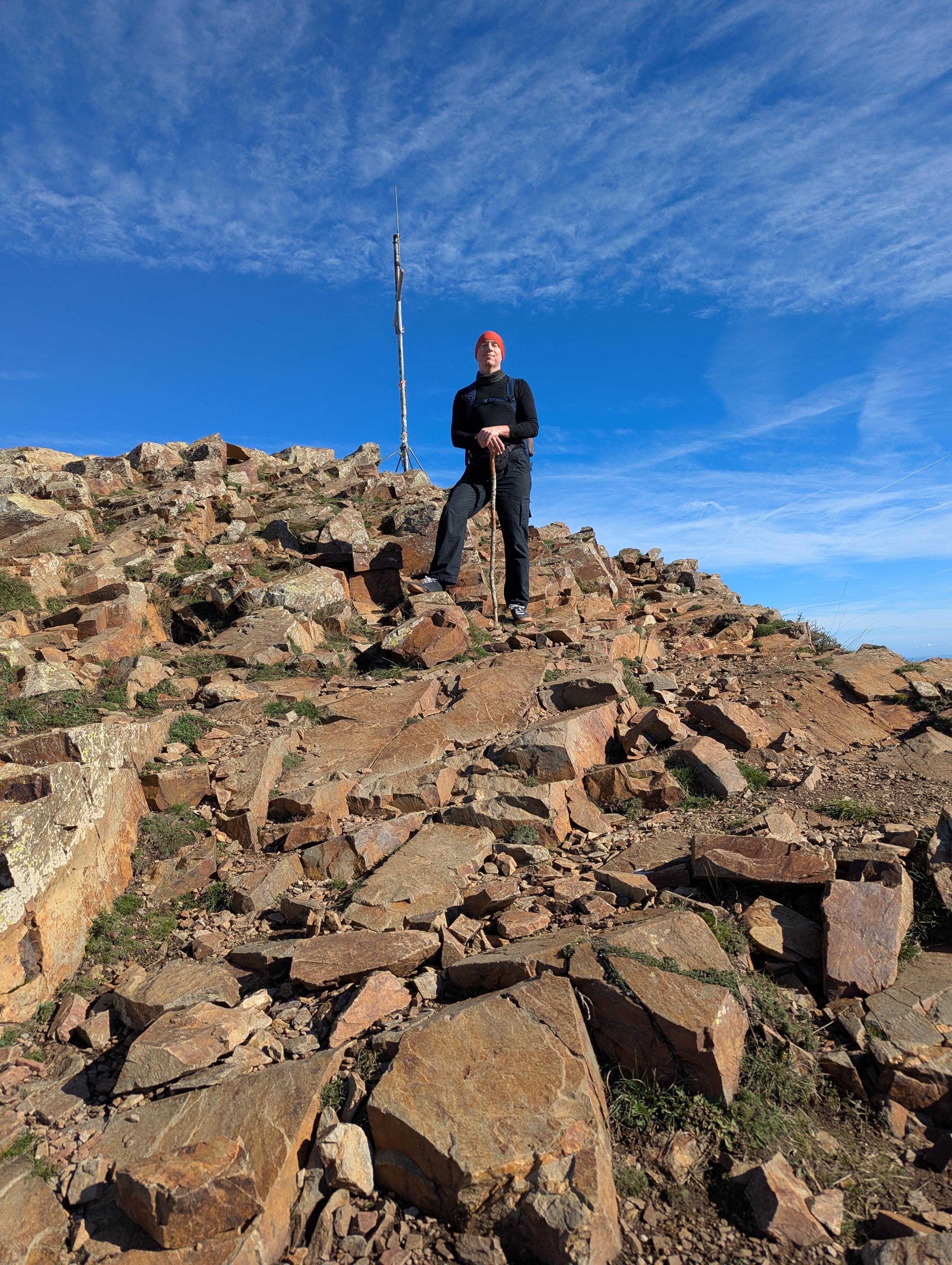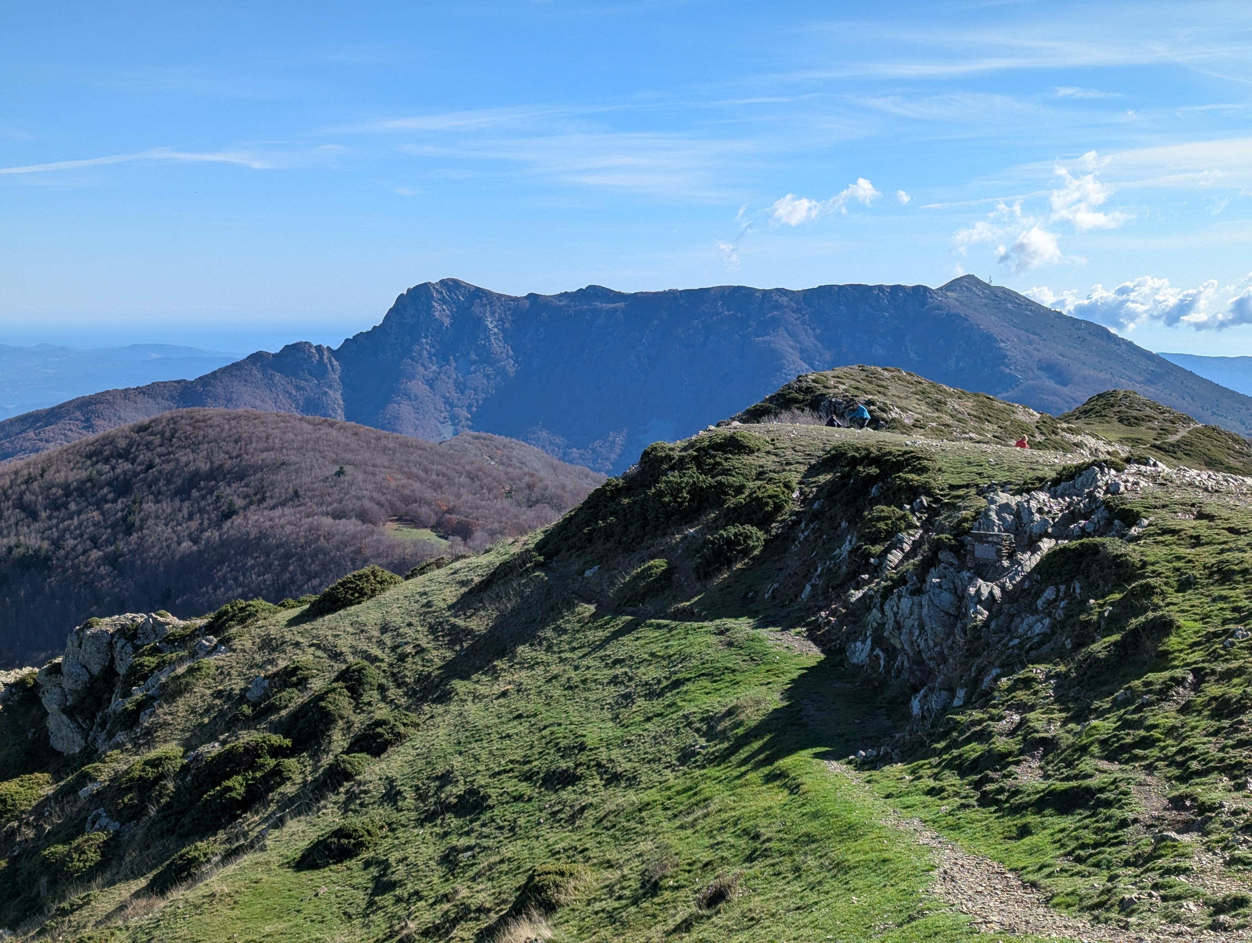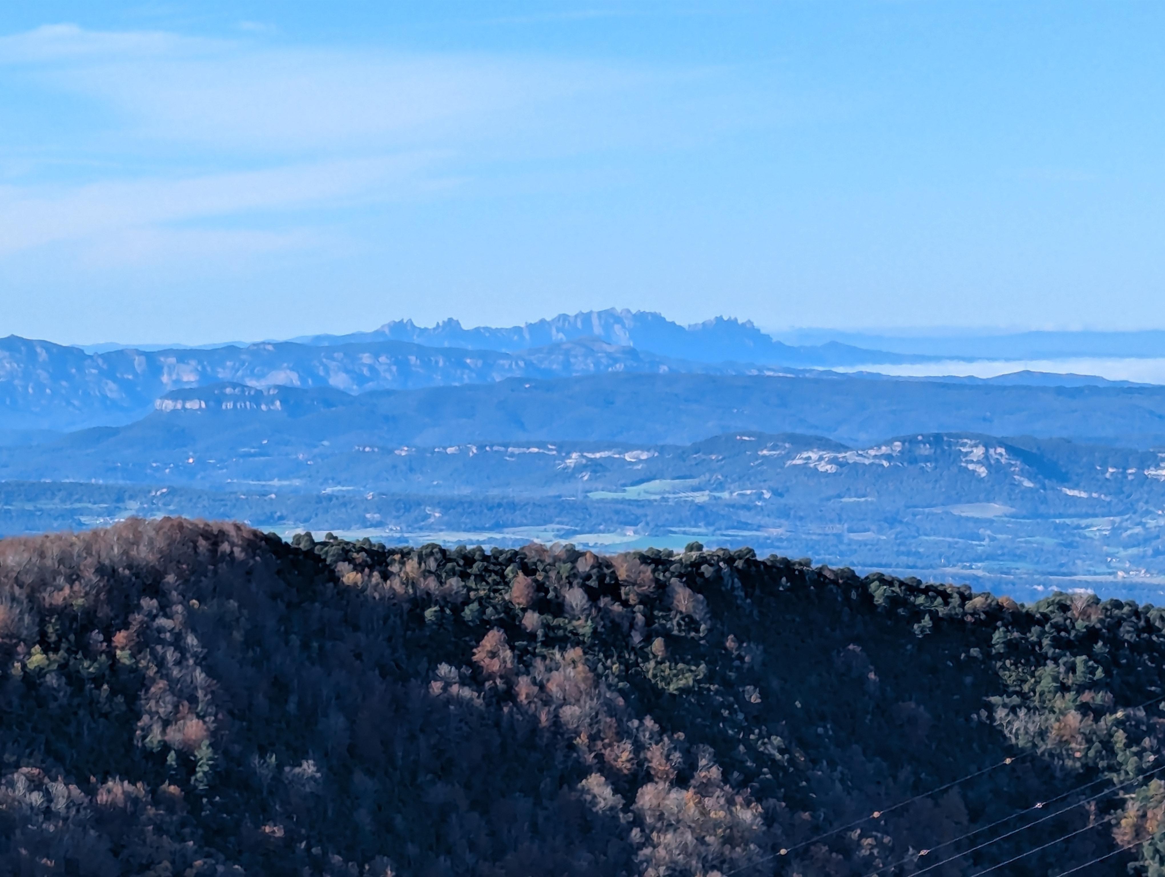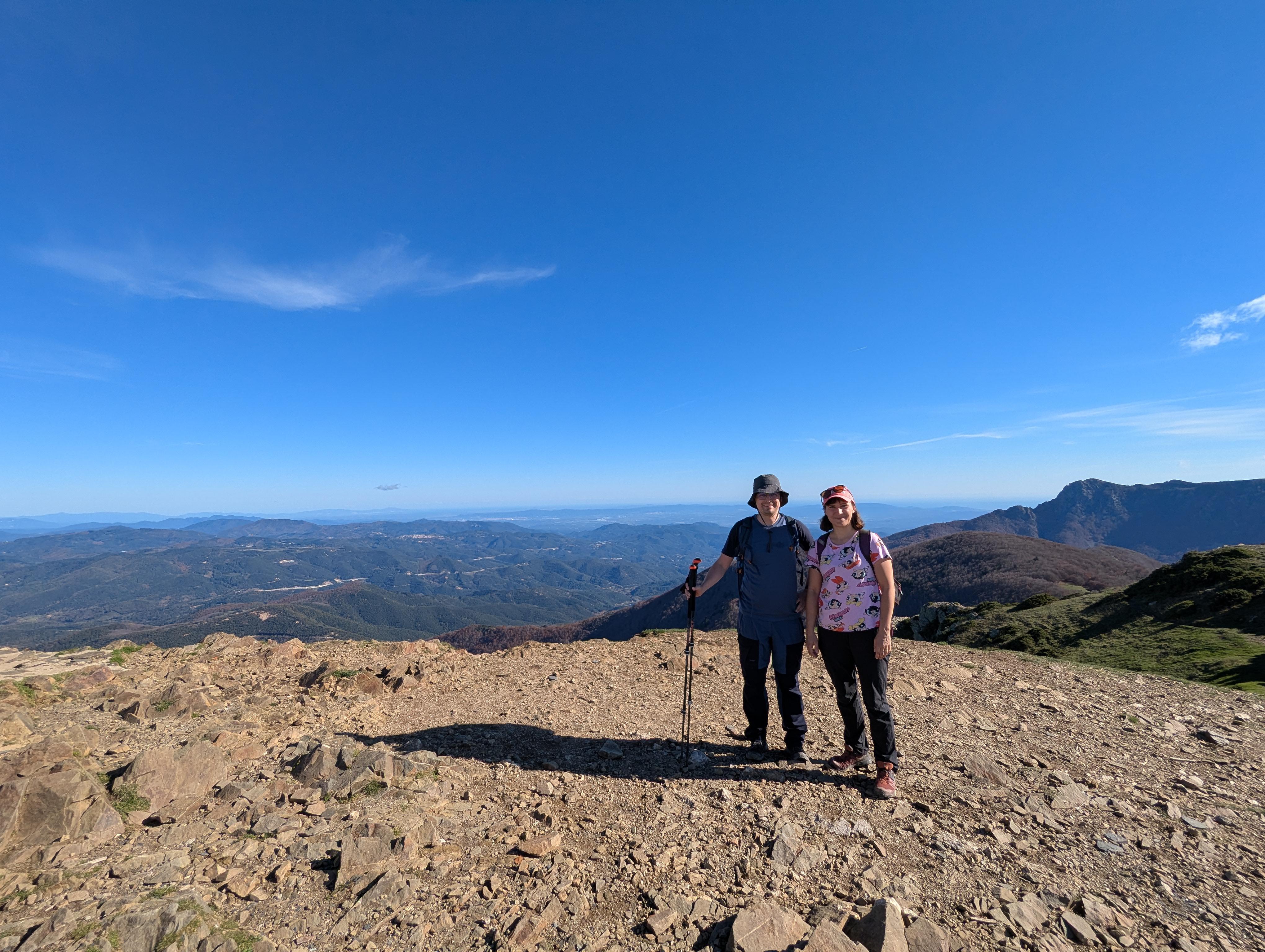Mimo intensywnego podejścia dosyć szybko osiągneliśmy szczyt Matagalls (1697 m). Miał on budowę kopy — strome choć gładkie podejście i płaski szczyt. Stamtąd rozpościerał się widok na wszystkie strony. Na wschodzie można było podziwiać dwa najwyższe szczyty Montseny: Los Agudes (1705 m) i Turó de l’Home (1705 m). W ogóle widoki z Montseny są bardzo fajne, bo można też zobaczyć inne okoliczne pasma górskie, a także miasta w oddali.