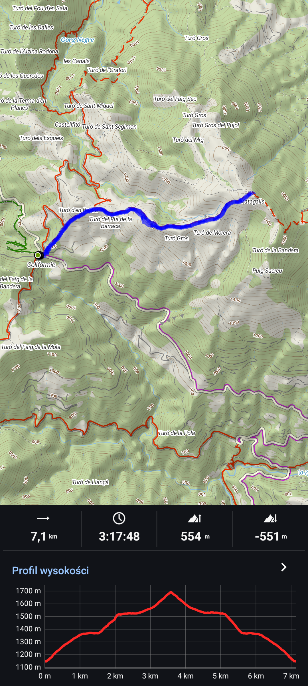 Cała trasa miała 7.1 km, 554 m podejść i zajęła 3:18.