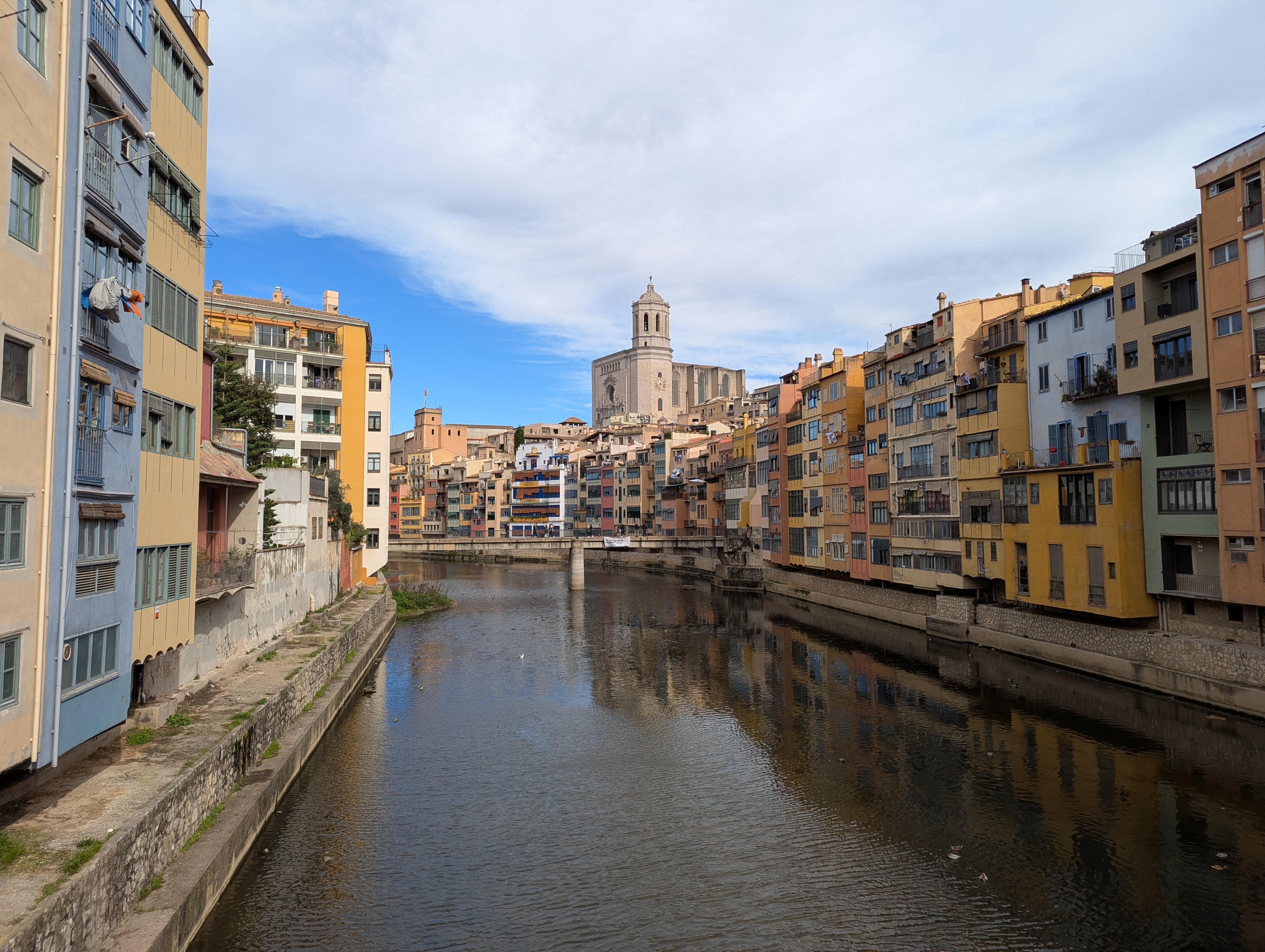 Zaczęliśmy od przejścia mostem nad rzeką Riu Onyar, gdzie uwagę zwracają kolorowe budynki (niestety podniszczone, jak się przyjrzy bliżej) i spacer starymi uliczkami.