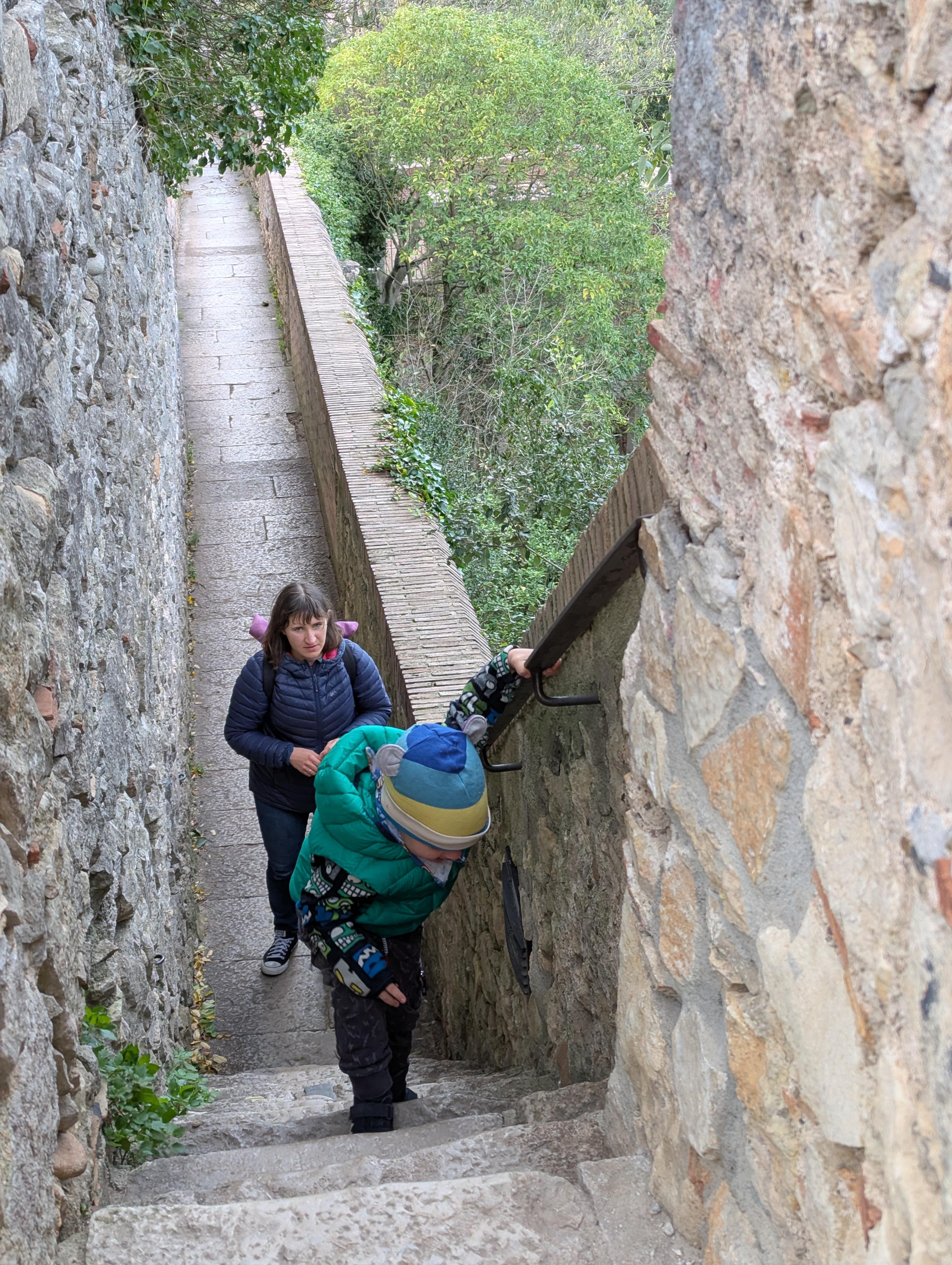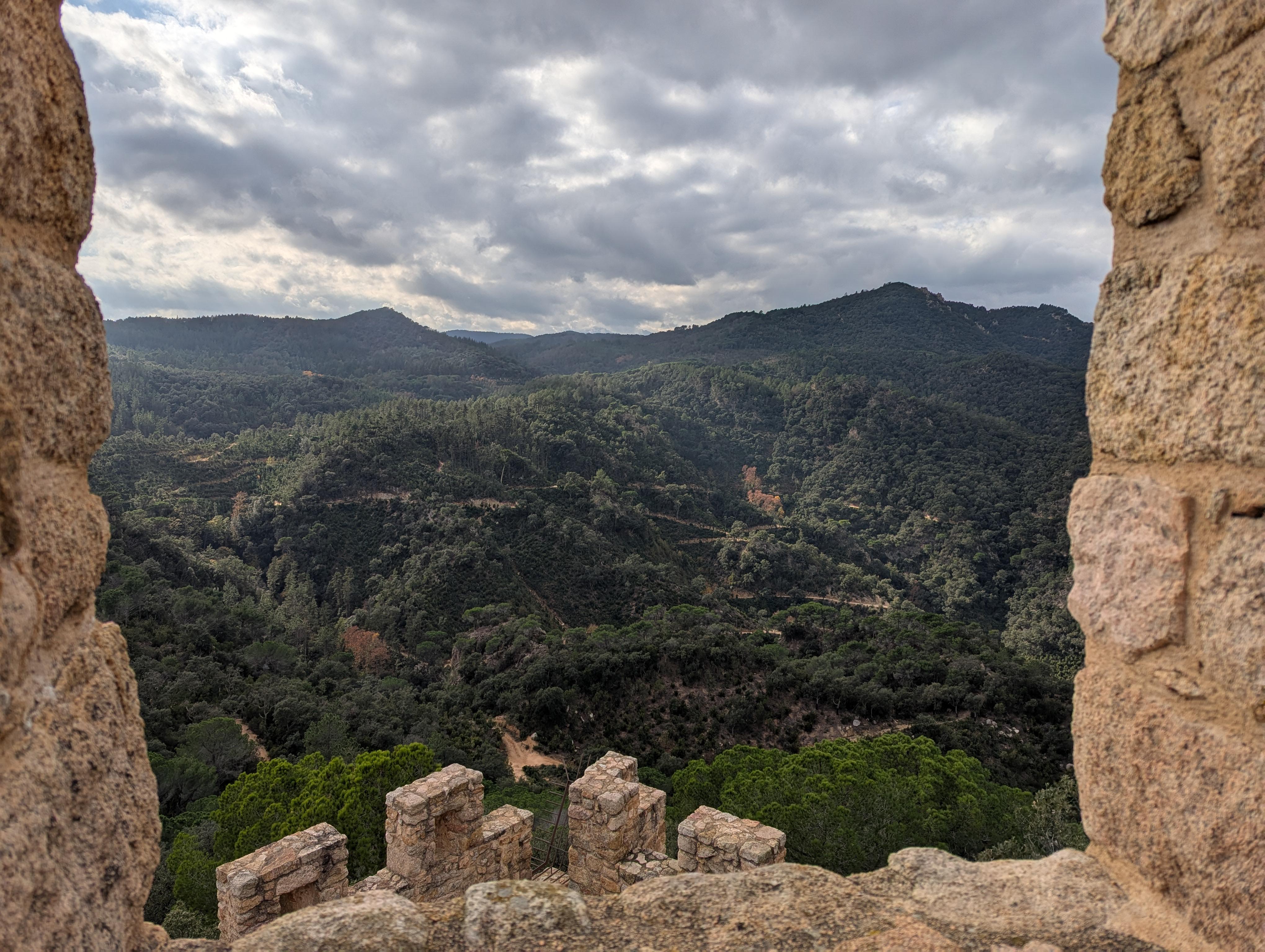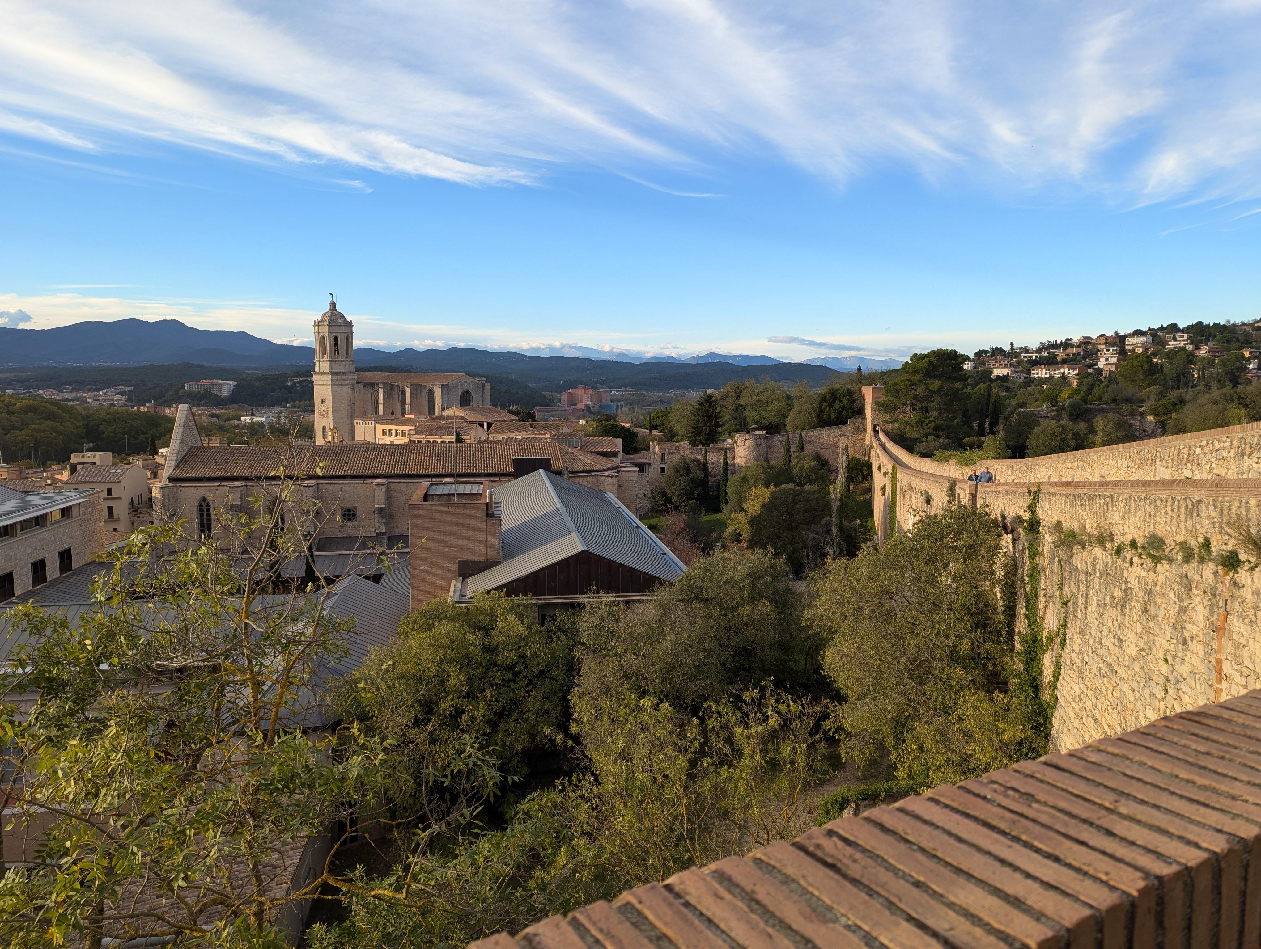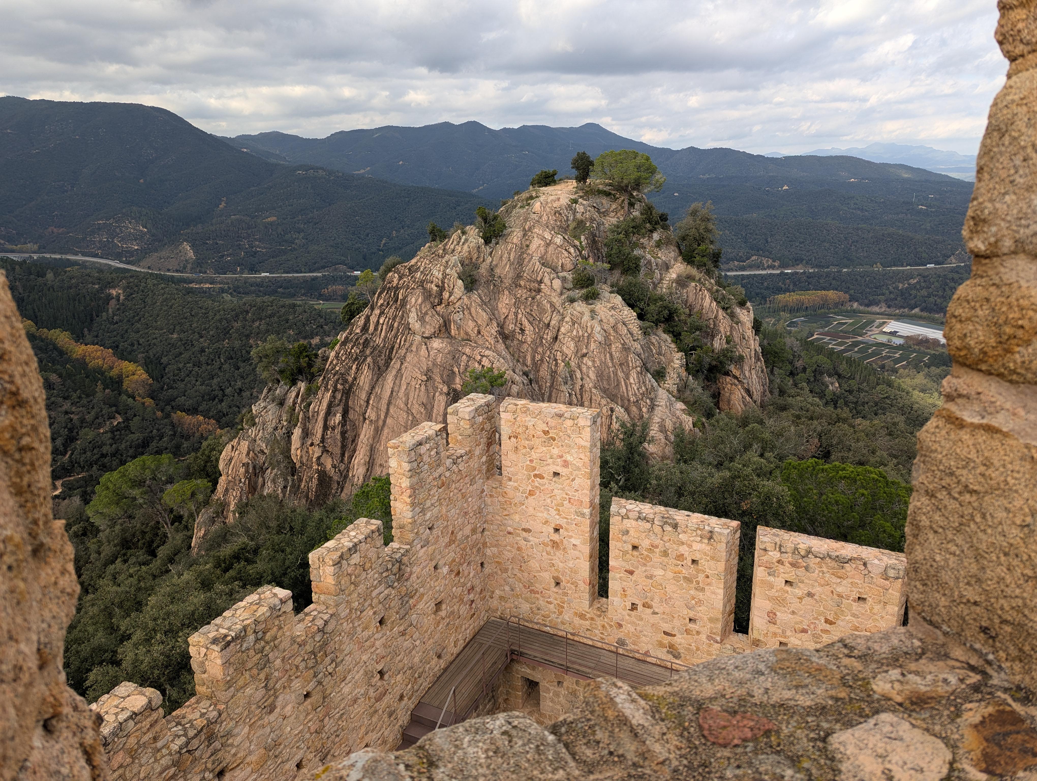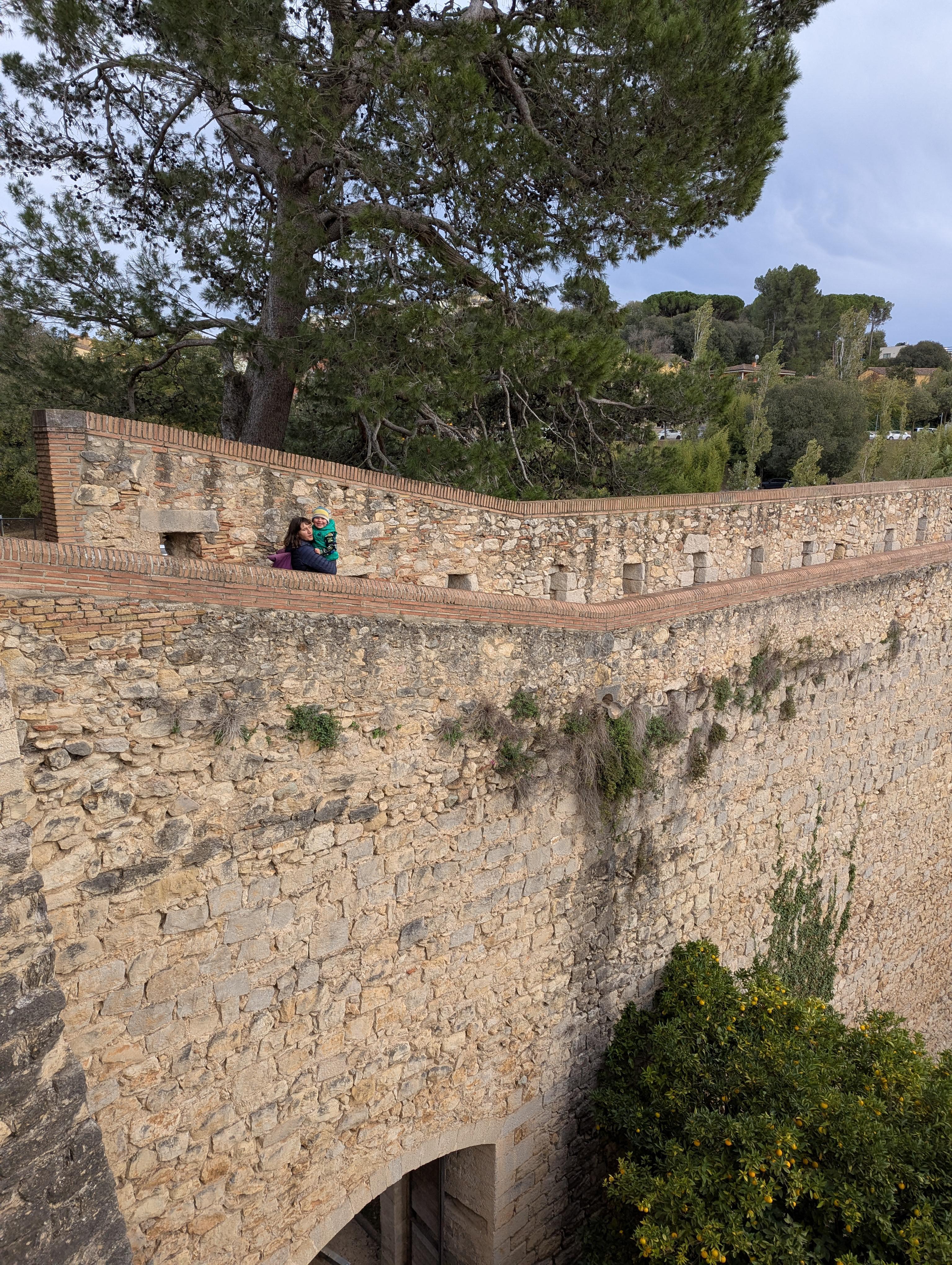 Najciekawszą częścią wycieczki był spacer po murach obronnych. Są to dosyć dobrze zachowane wysokie mury z basztami. Mają w sumie kilka kilometrów długości w kilku odcinkach. Z murów jest fajny widok na miasto i otaczające go góry. Najbardziej okazale prezentuje się nasz masyw Montseny i można dostrzec dwa najwyższe szczyty: Los Agudes (1705 m) i Turó de l’Home (1705 m) — tym razem od północnego wschodu.