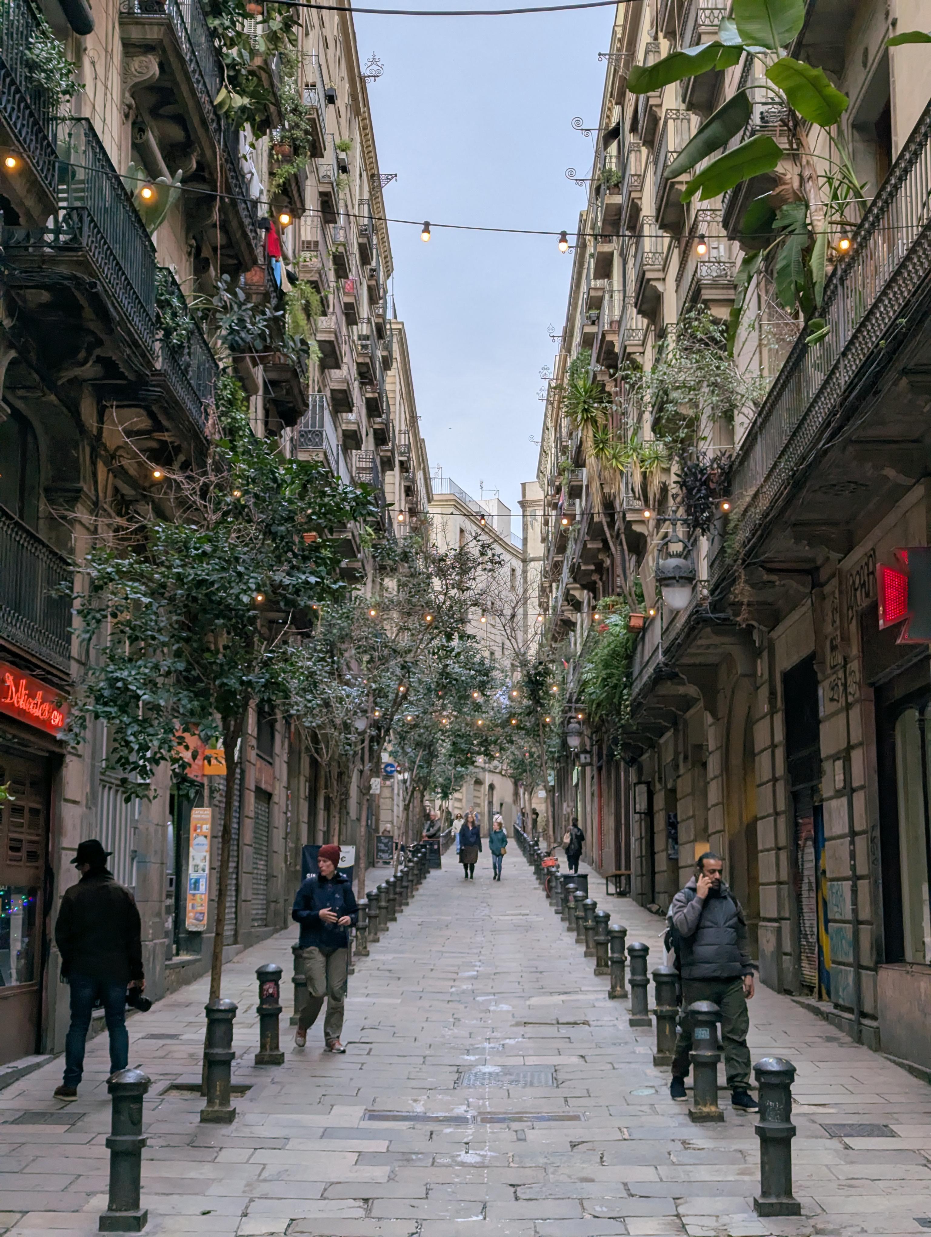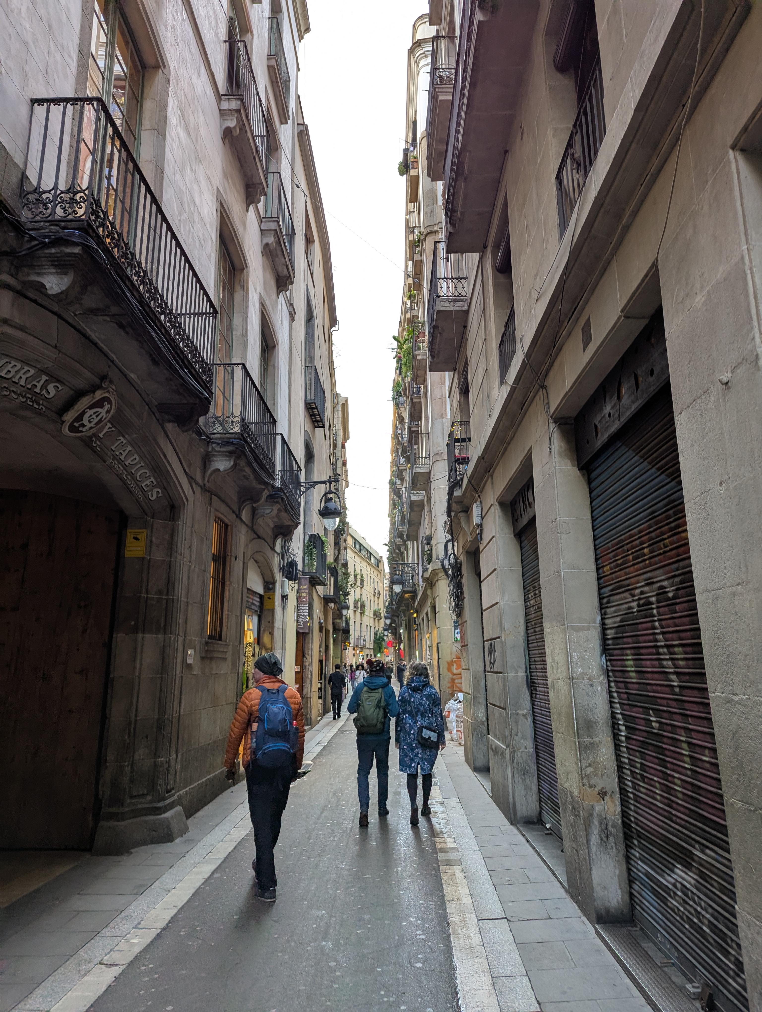 To był dosyć długi spacer, zrobiliśmy 23295 kroków. Ogólnie centrum jest bardzo zatłoczone. A cała Barcelona składa się z niekończących się kwadratów ulic, które wszystkie wyglądają tak samo — a przeszliśmy ich kilkadziesiąt. No, ale zwiedzanie miast nie cieszy się powodzeniem na naszych wyjazdach.