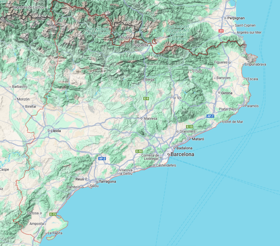 - Kolejmy górzysty pas zielony z parkami narodowymi — tu między innymi jest Montseny.